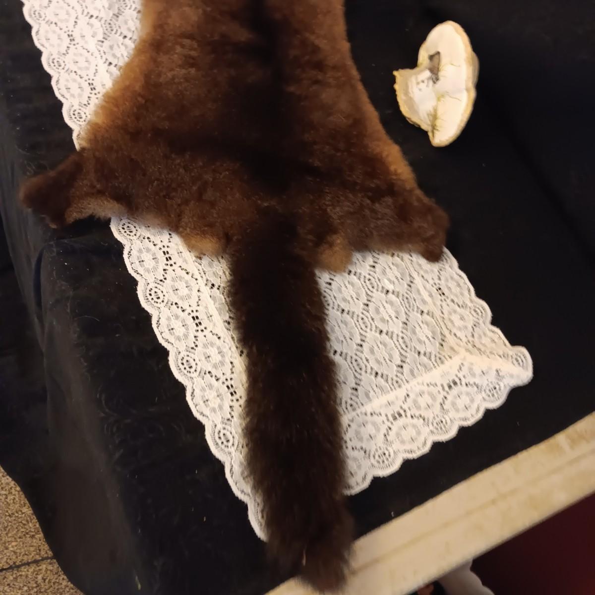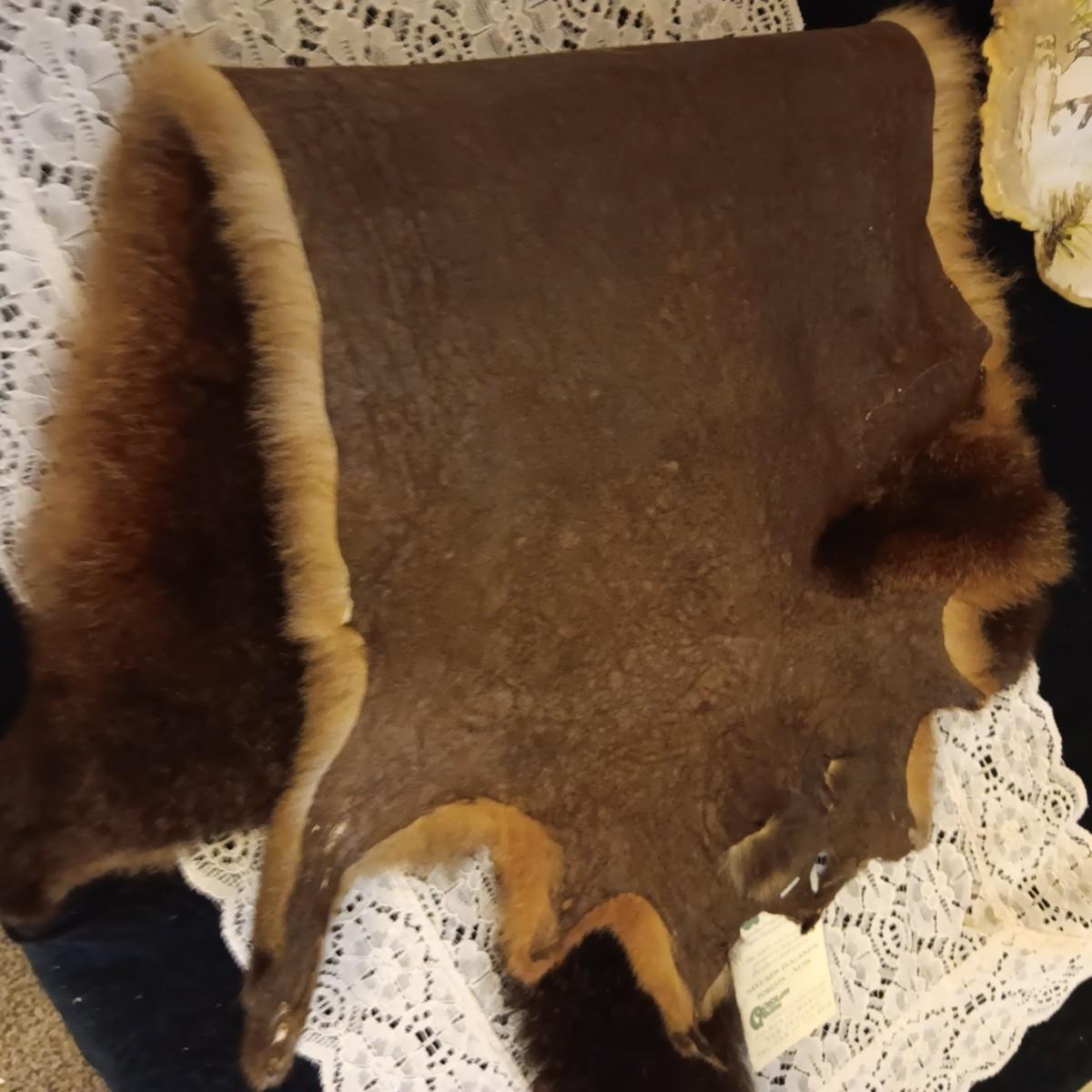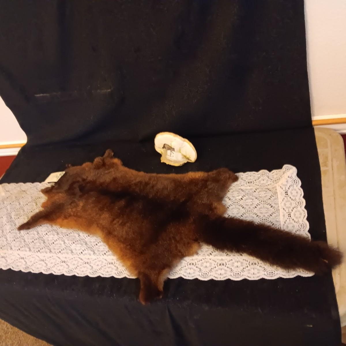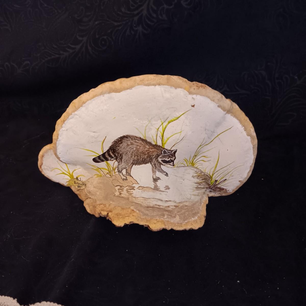 POSSUM PELT AND A RACOON PAINTED ON A PIECE OF MONKEY POD