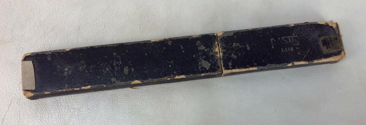 Found in its original box which has a fair amount of wear here is a Pre-WWII POST 1446 slide rule...Made in Japan this Sun Hemmi was imported by the Frederick Post Co. of Chicago..around since 1890 they started imported bamboo slide rules from Japan in 1920...This one has some normal use wear..missing glass in cursor...alot of loss and fading on the conversion chart on back..still slides smoothly...Celluloid scales...11 1/16" x 1 1/8"...As shown..Offered with no reserve...