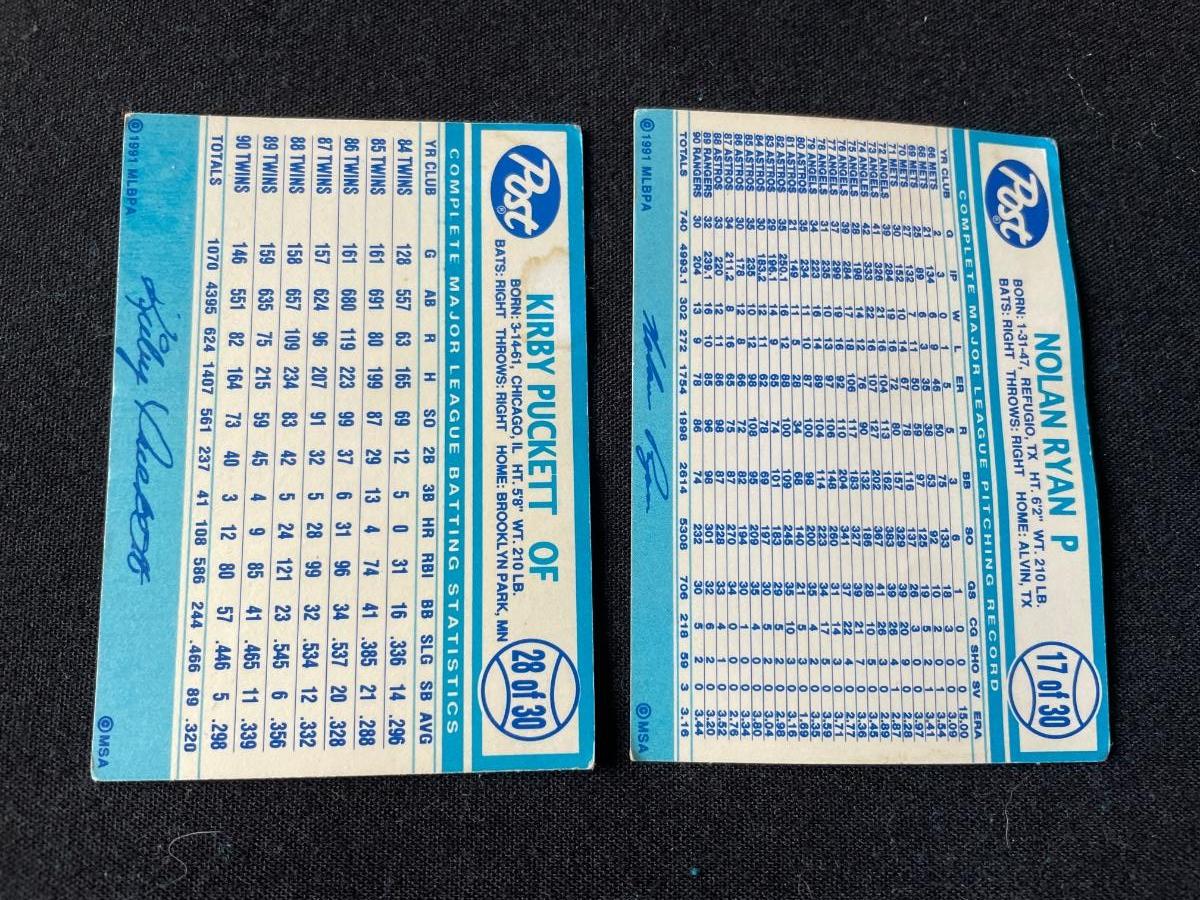 Nolan Ryan & Kirby Puckett Baseball Cards