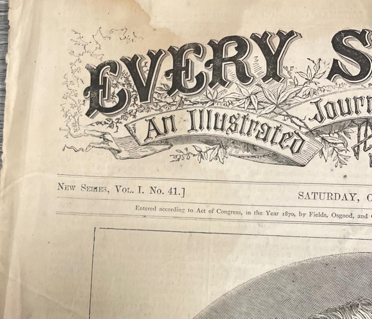 Description: Post Civil War Newspaper October 1870/ Every Saturday/ An illustrated Journal of Choice readingMeasurement approximate:
