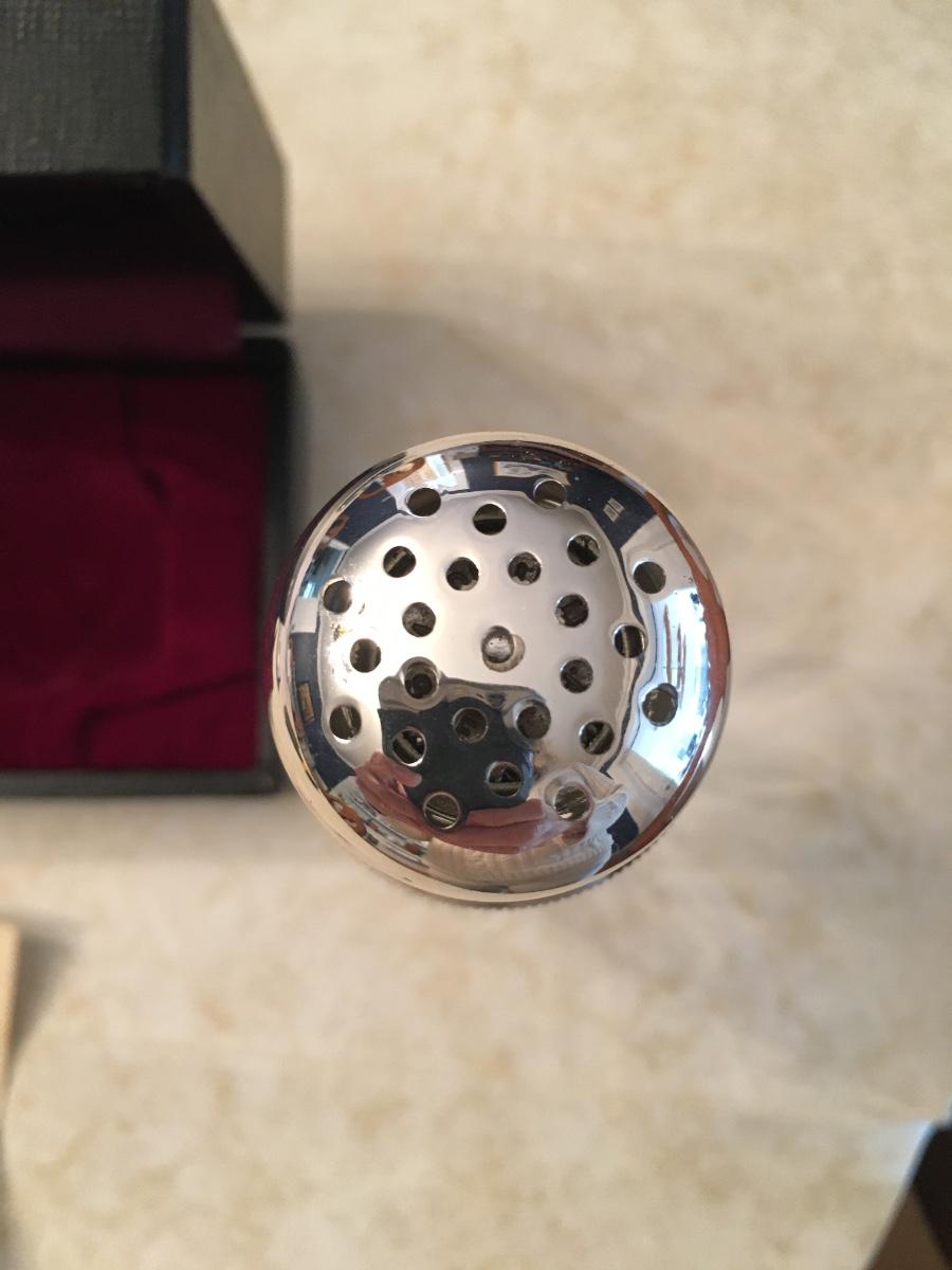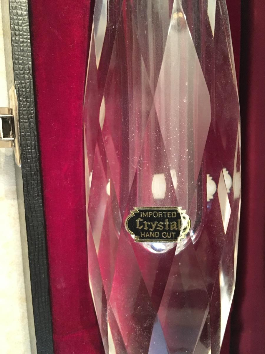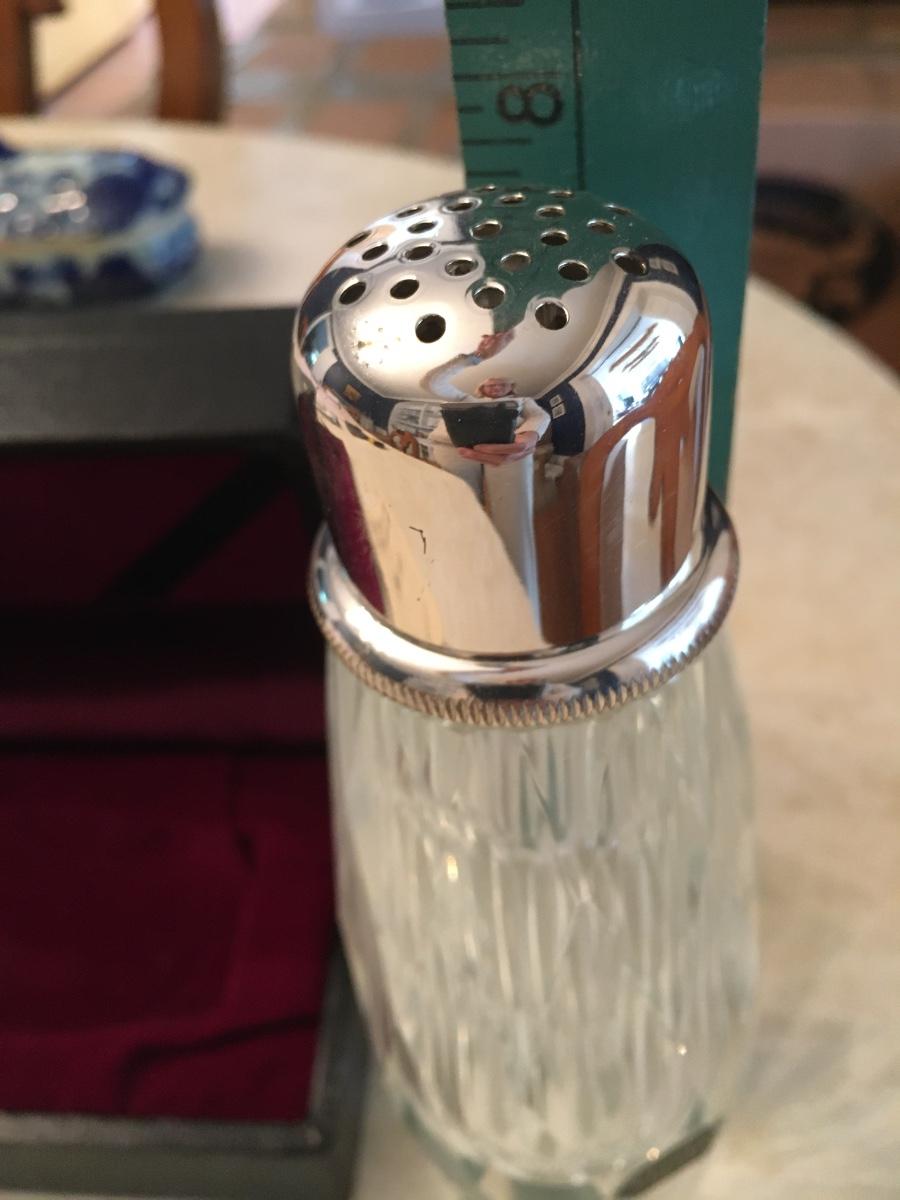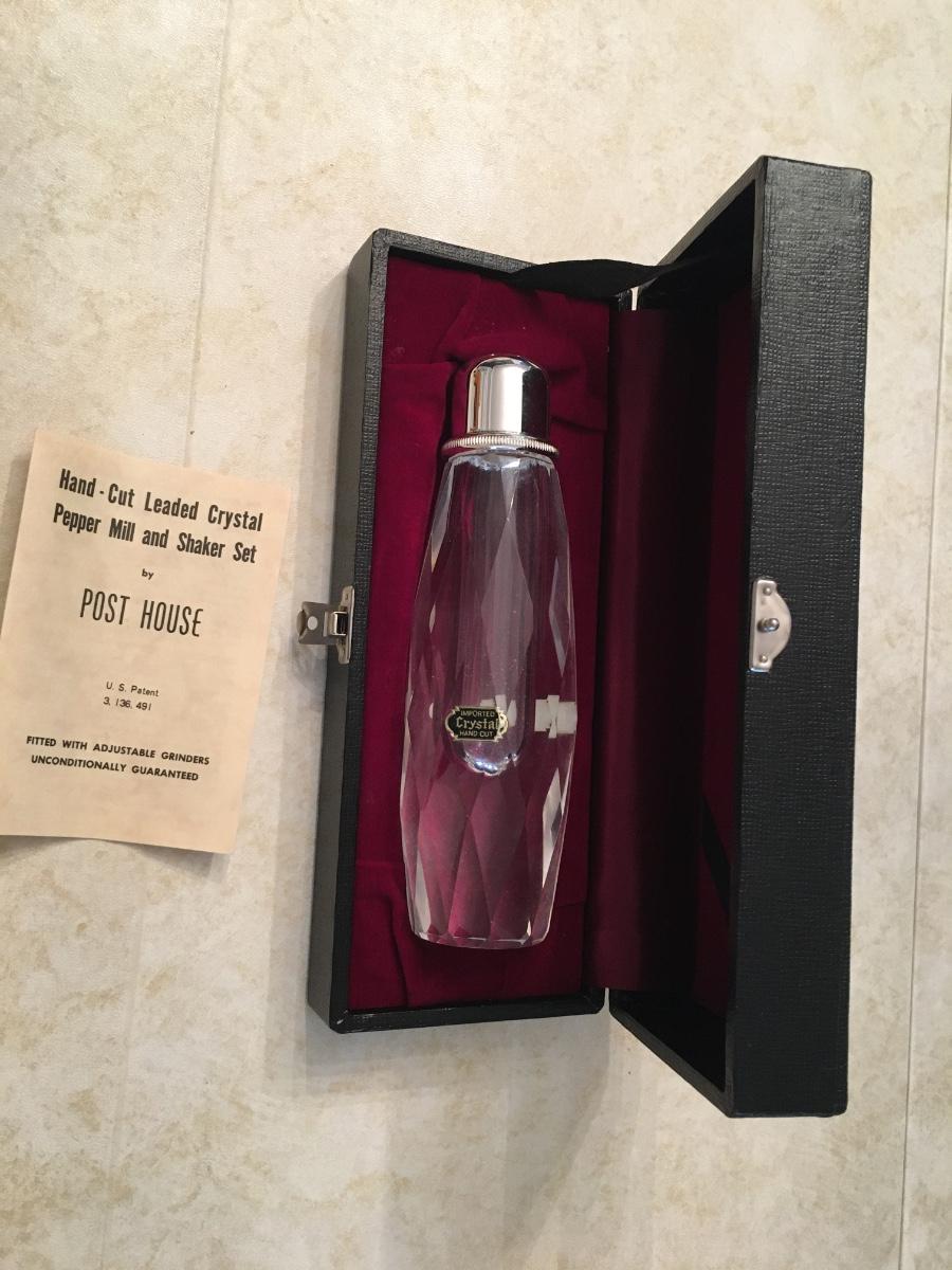 Hand cut leaded crystal shaker. Does not have pepper mill. Comes with it's own lined case.