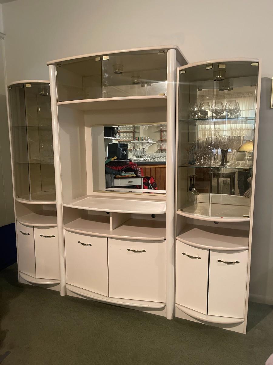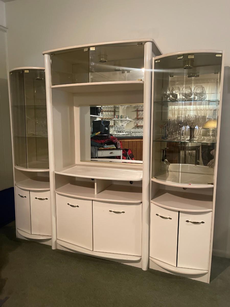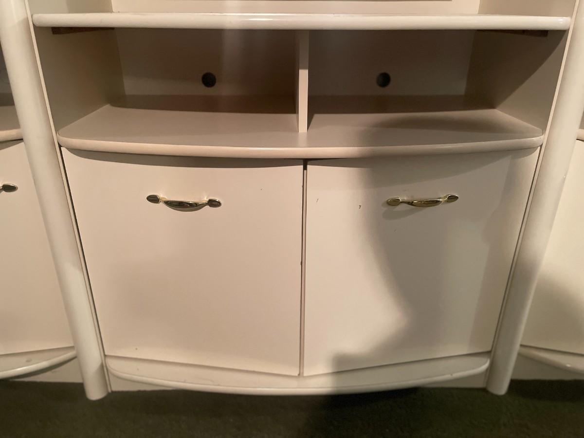 Post Modern White Laminate Entertainment Center/ Bar Cabinet. 82" x 76 1/2" high x 15" deep