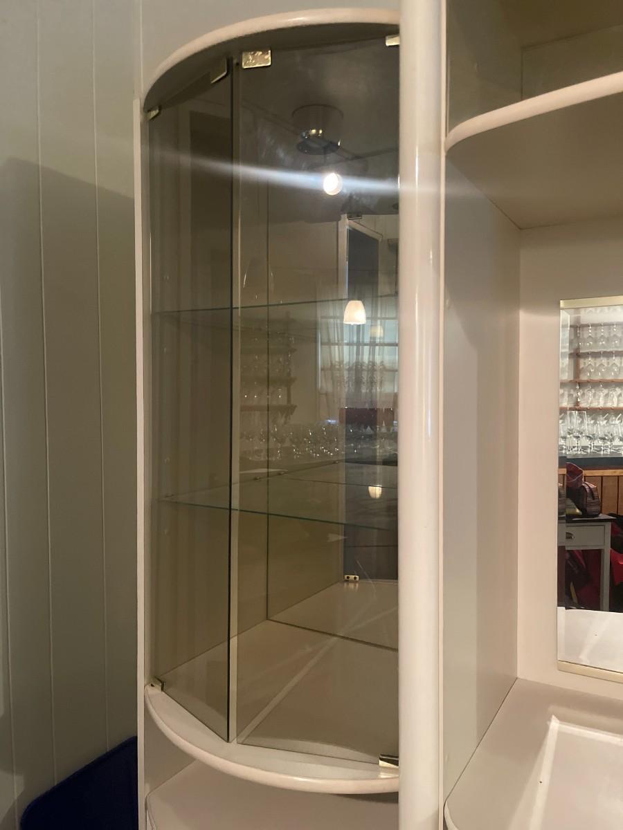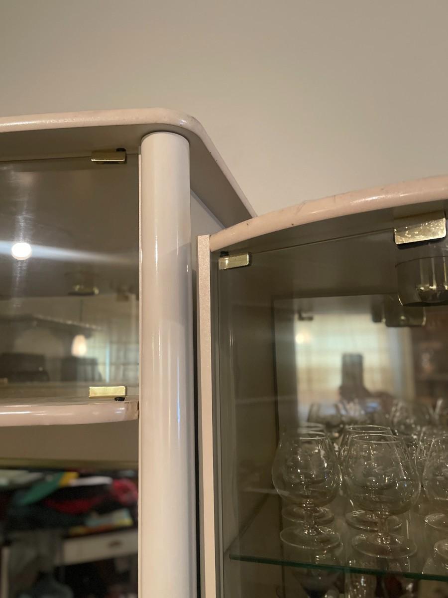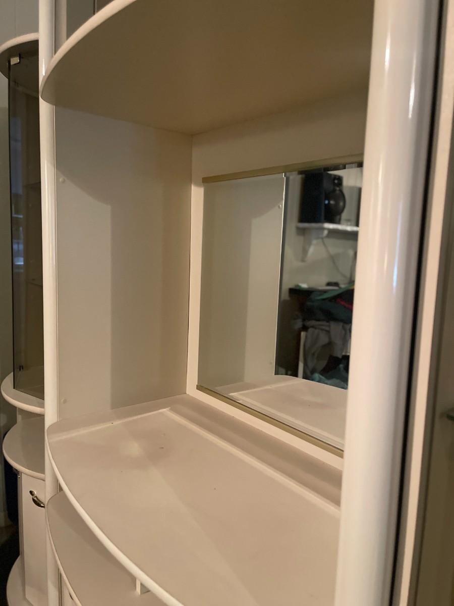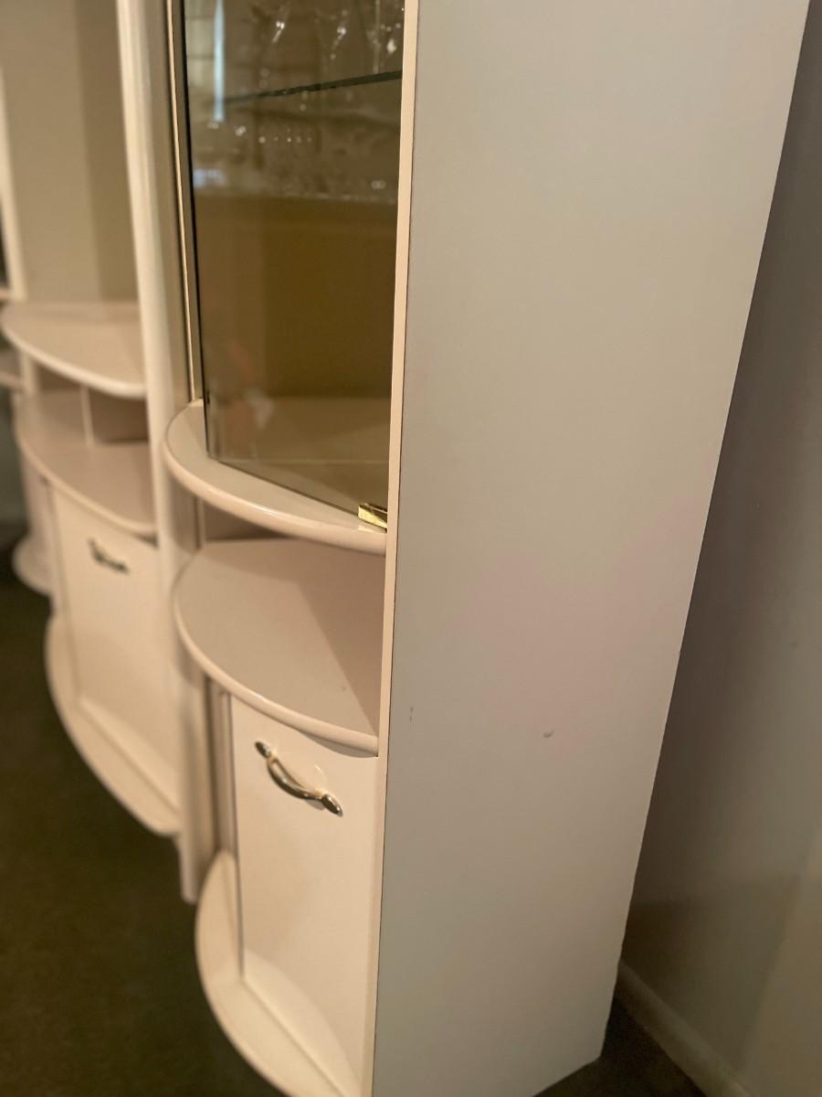 Post Modern White Laminate Entertainment Center/ Bar Cabinet. 82" x 76 1/2" high x 15" deep