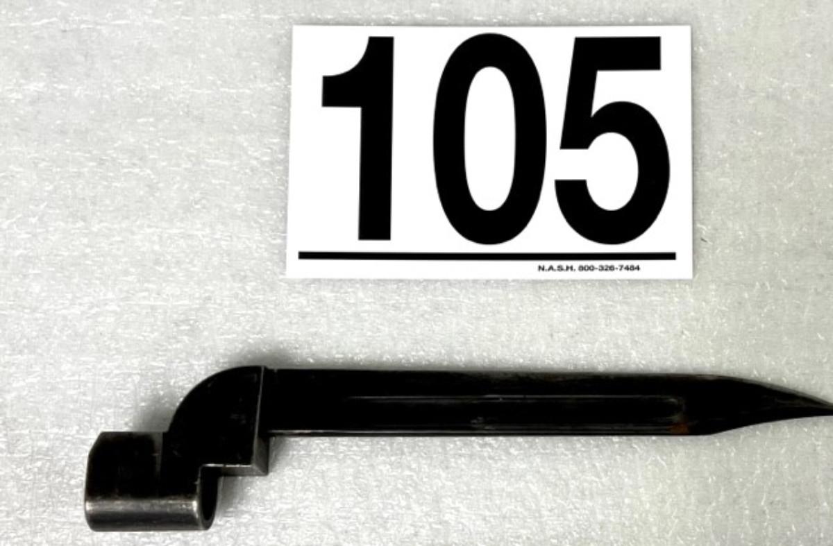 British Royal Small Arms Factory No. 9 bayonet. Replaces No. 4 spike bayonet. Blade length is 8". SOLD AS IS.