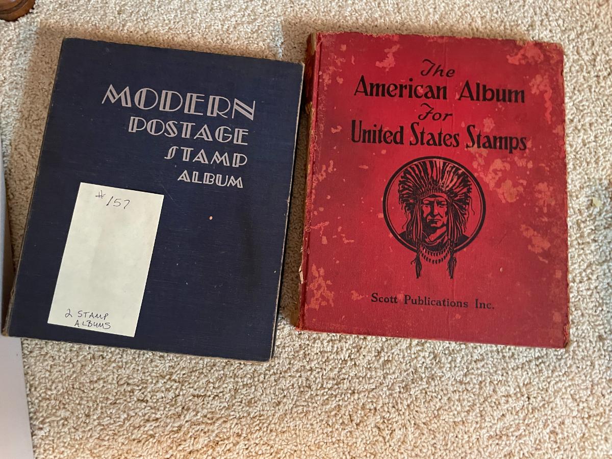 2 postage stamp albums along with asst stamps