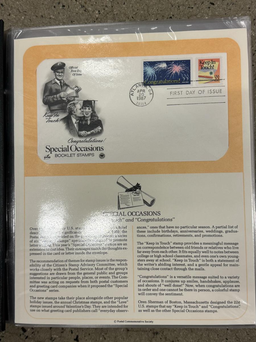 Postal Commemorative Society U.S. First Day Covers 1987-1988