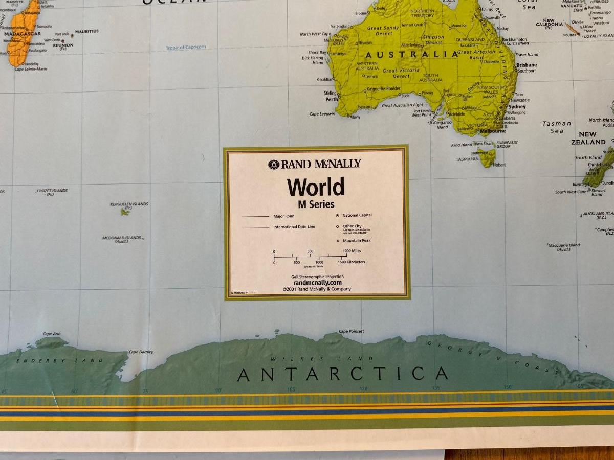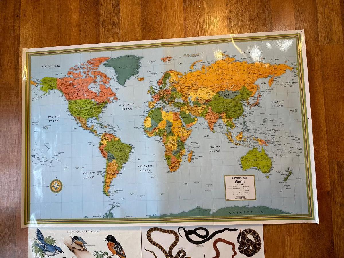 World Map measures 50” x 32”