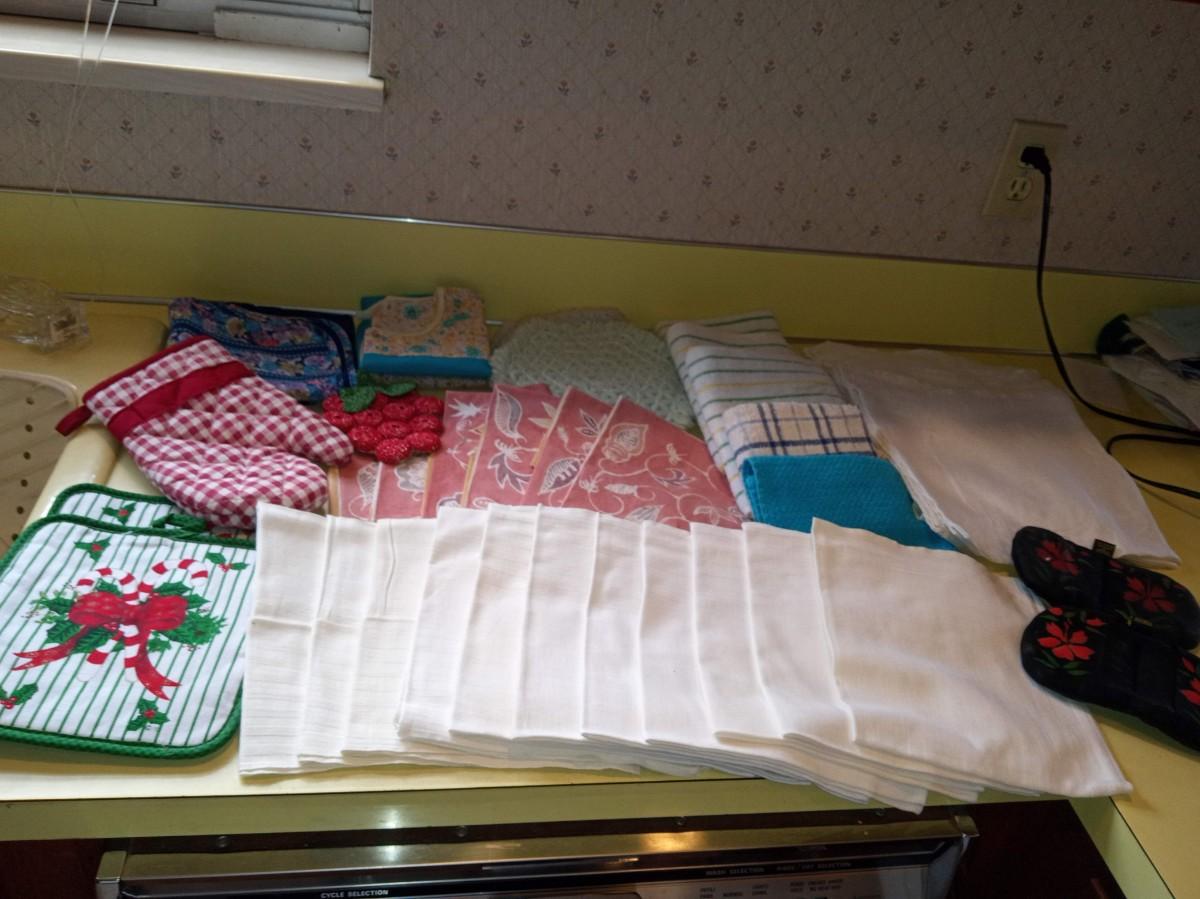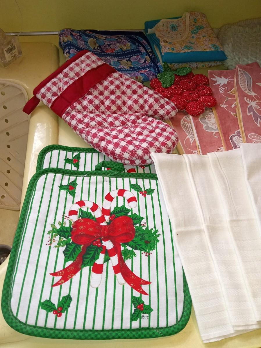 POT HOLDERS, LINEN NAPKINS, APRONS AND DISH TOWELS