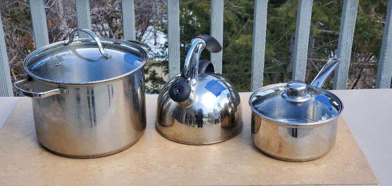 6 pc Pot Lot (Chefmate Stock pot and sauce pan, oxo water pot)