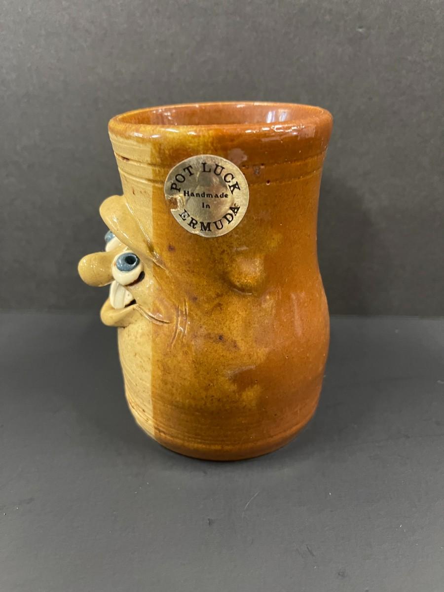 Pot Luck Pottery mug, hand made in Bermuda. Excellent condition. 5"