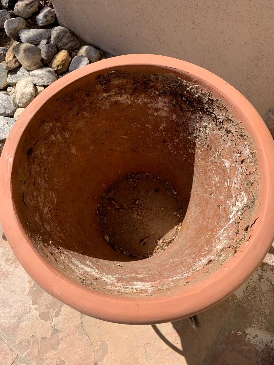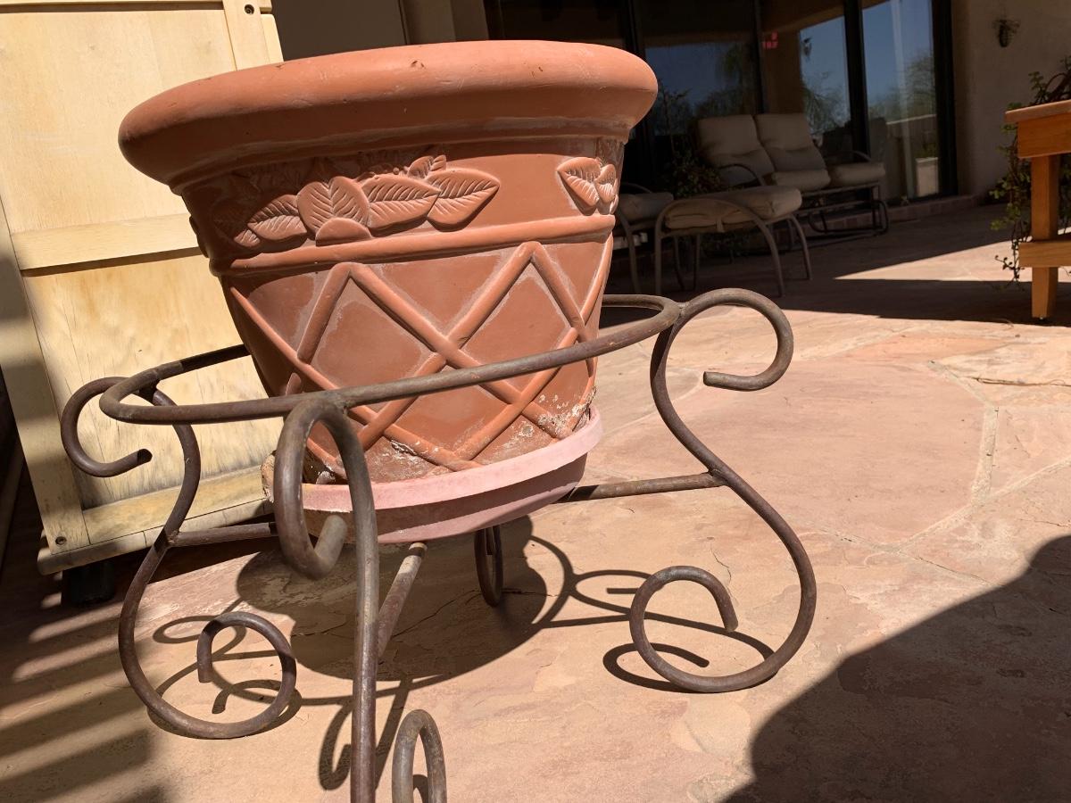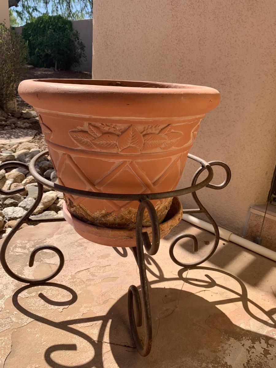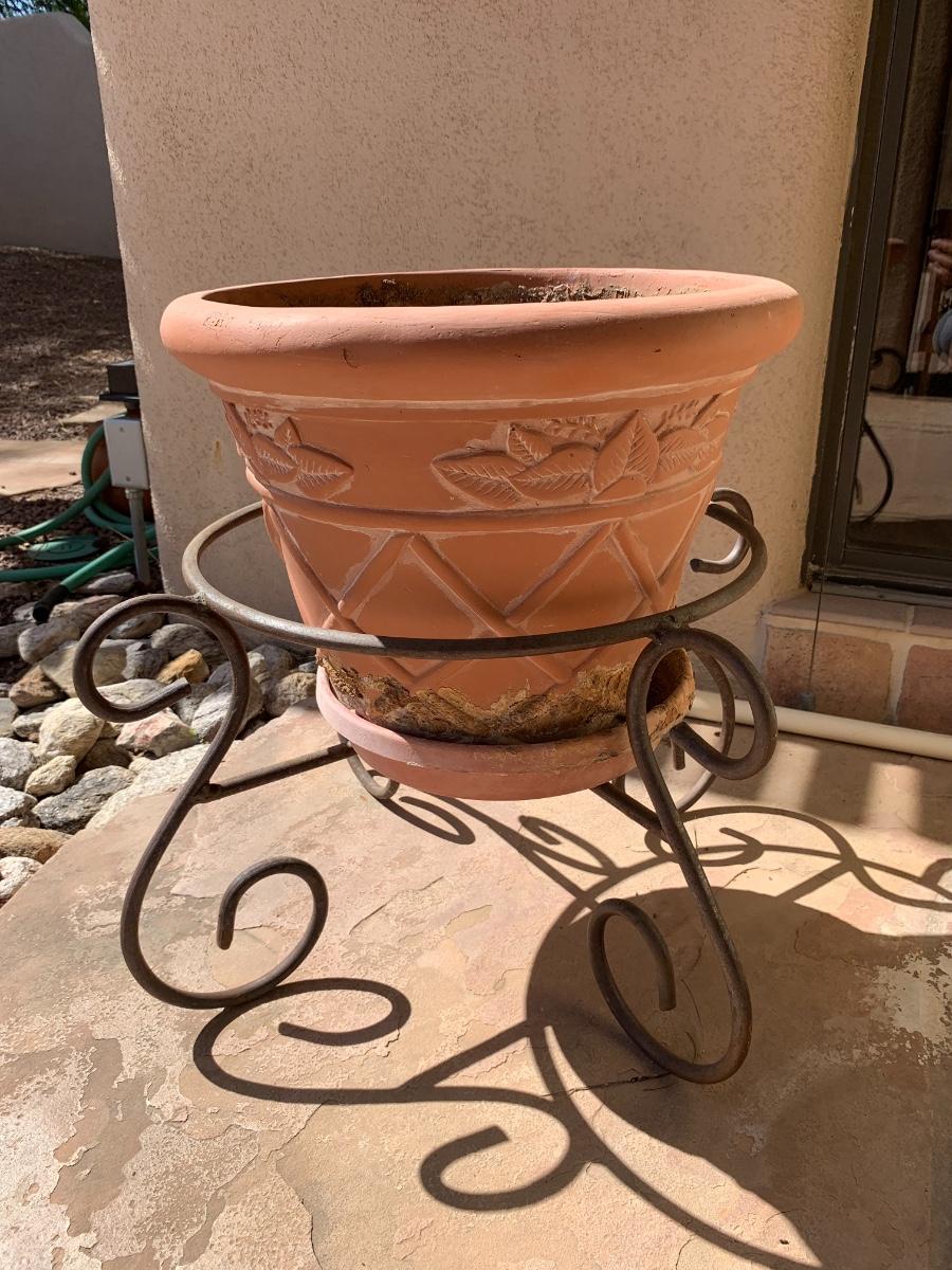 Pot for plants with a stand. Very nice condition. Fairly large pot but not enormous. Pot is plastic and not clay!
