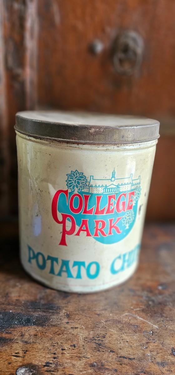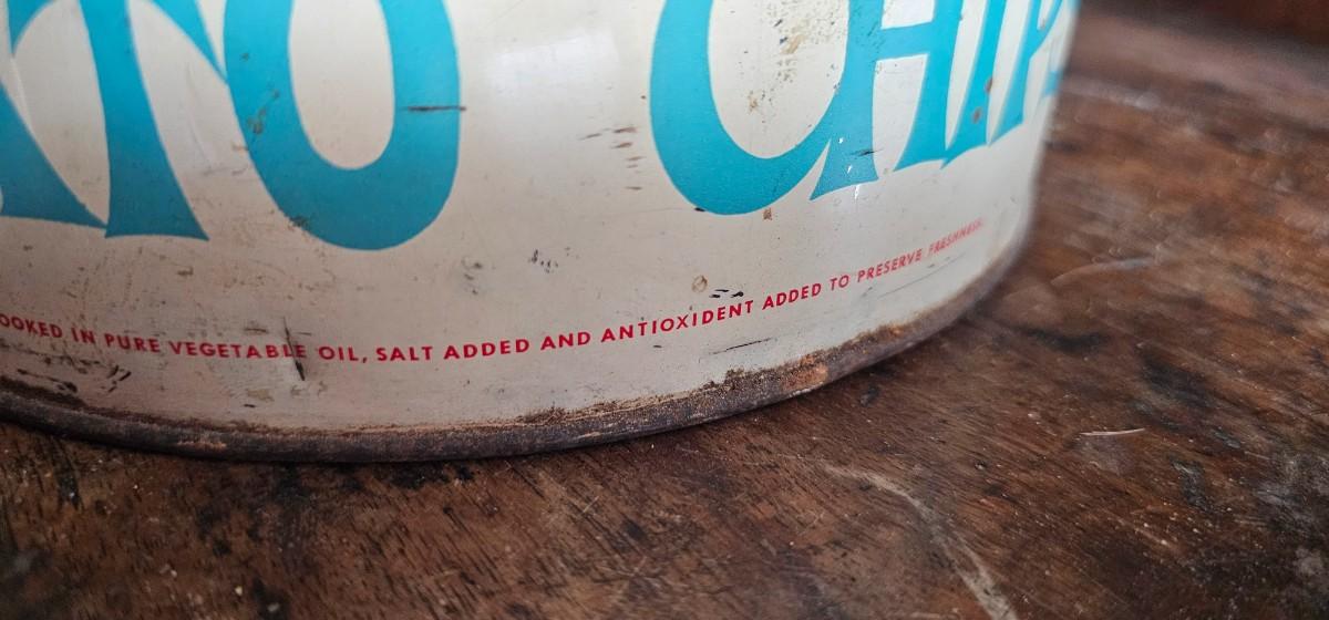 Vintage potato chip can, held 1 lb of potato chips