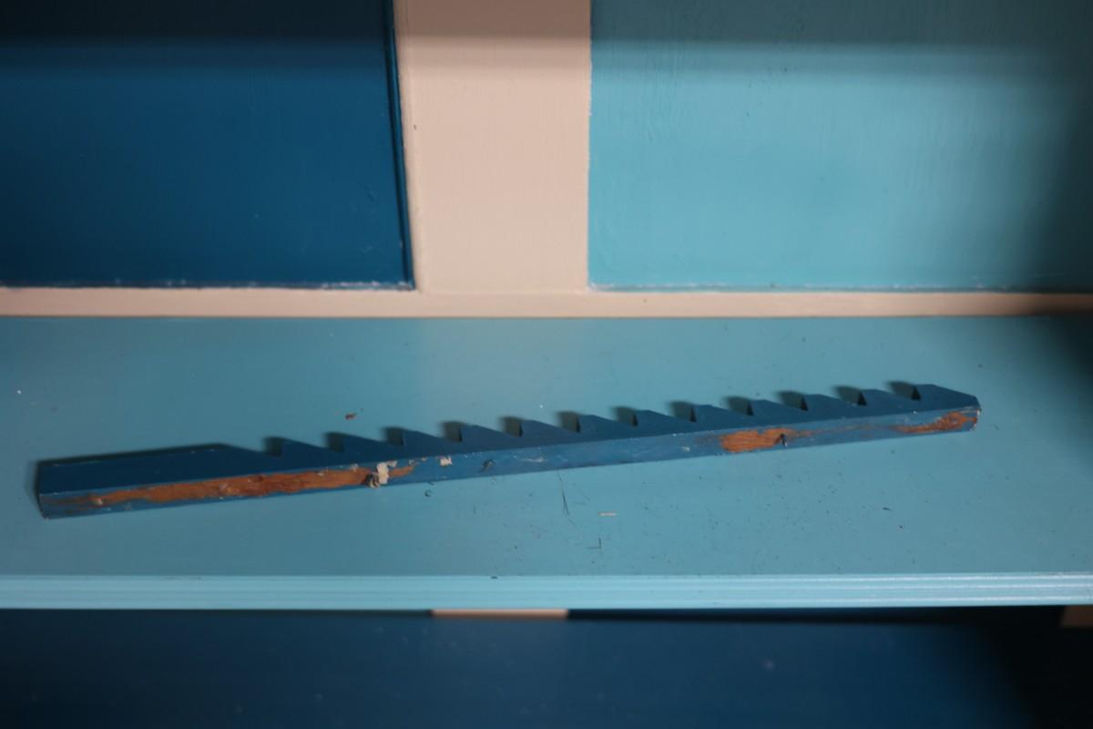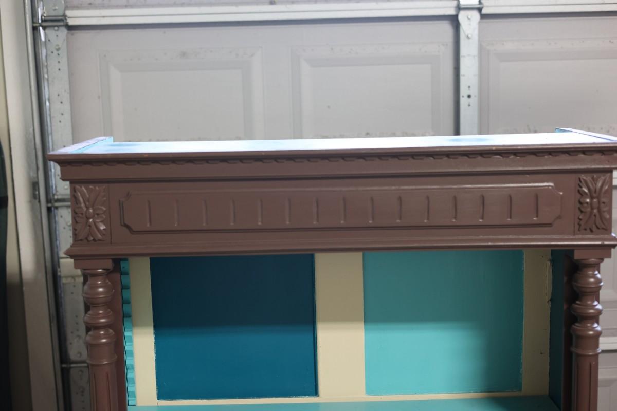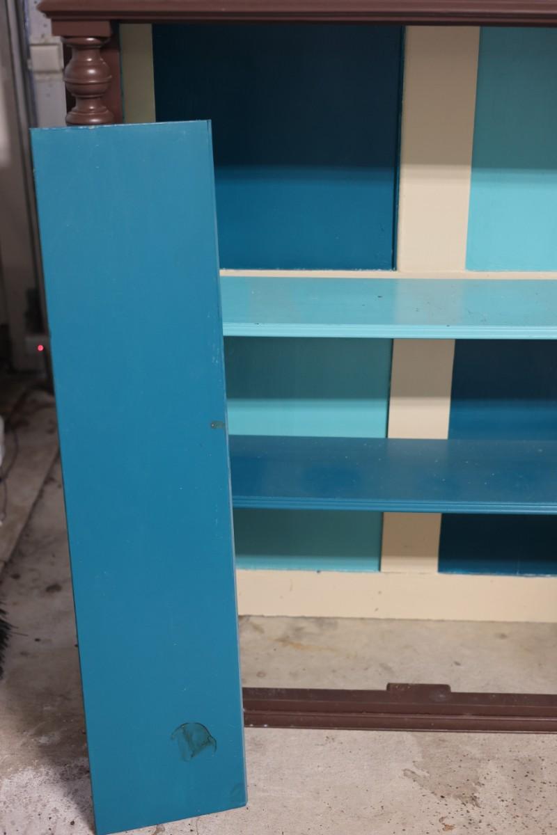 One shelf holder on the top right side needs to be glued back on. The wood on the bottoms isn't attached.