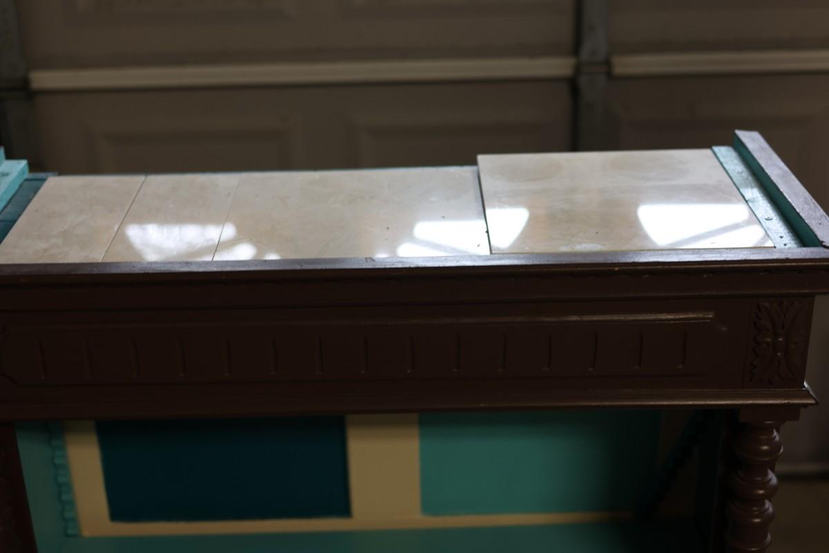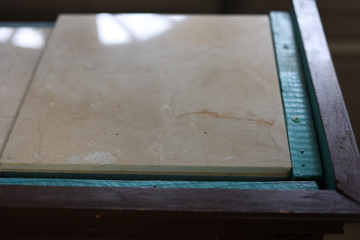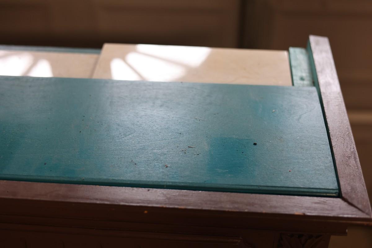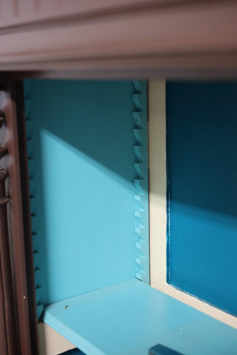 One shelf holder on the top right side needs to be glued back on. The wood on the bottoms isn't attached.