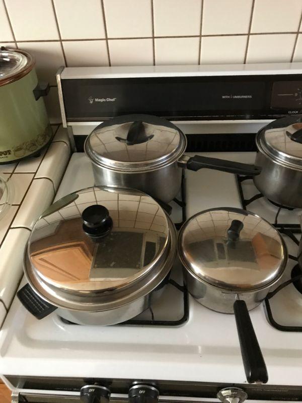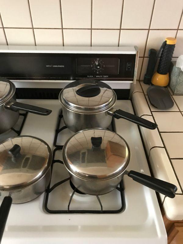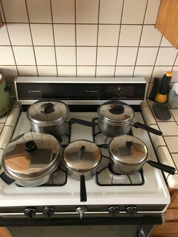 Variety of Pots & Pans. Set of 5, different sizes, all with lids.