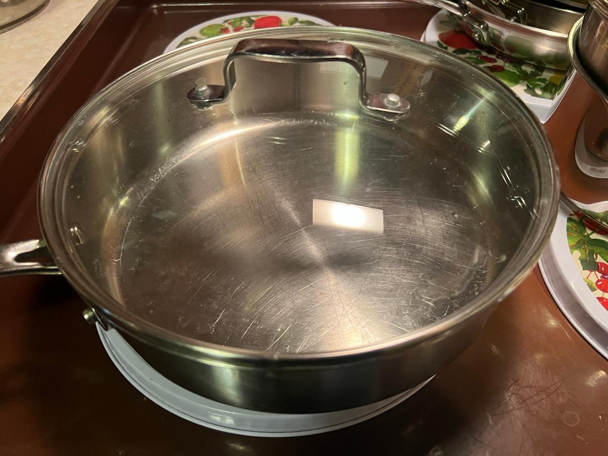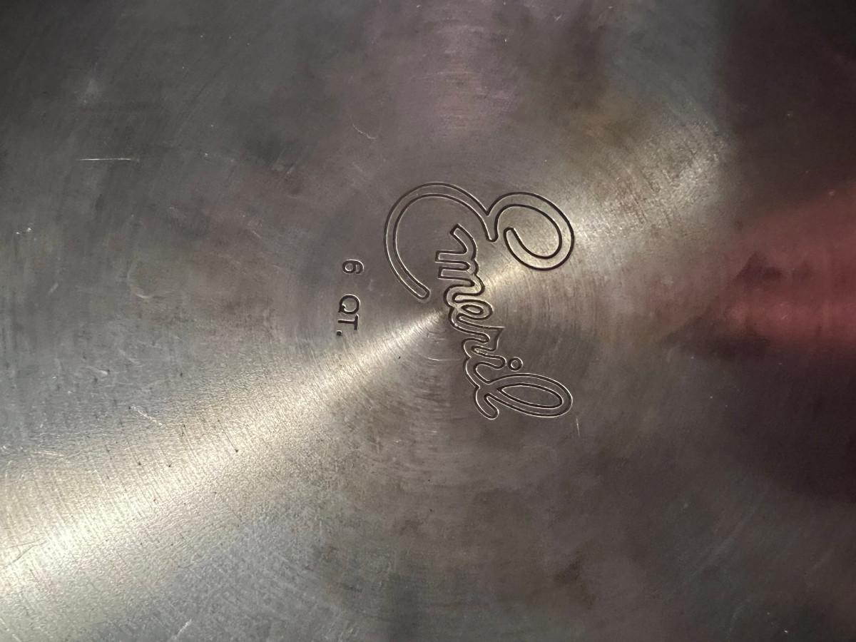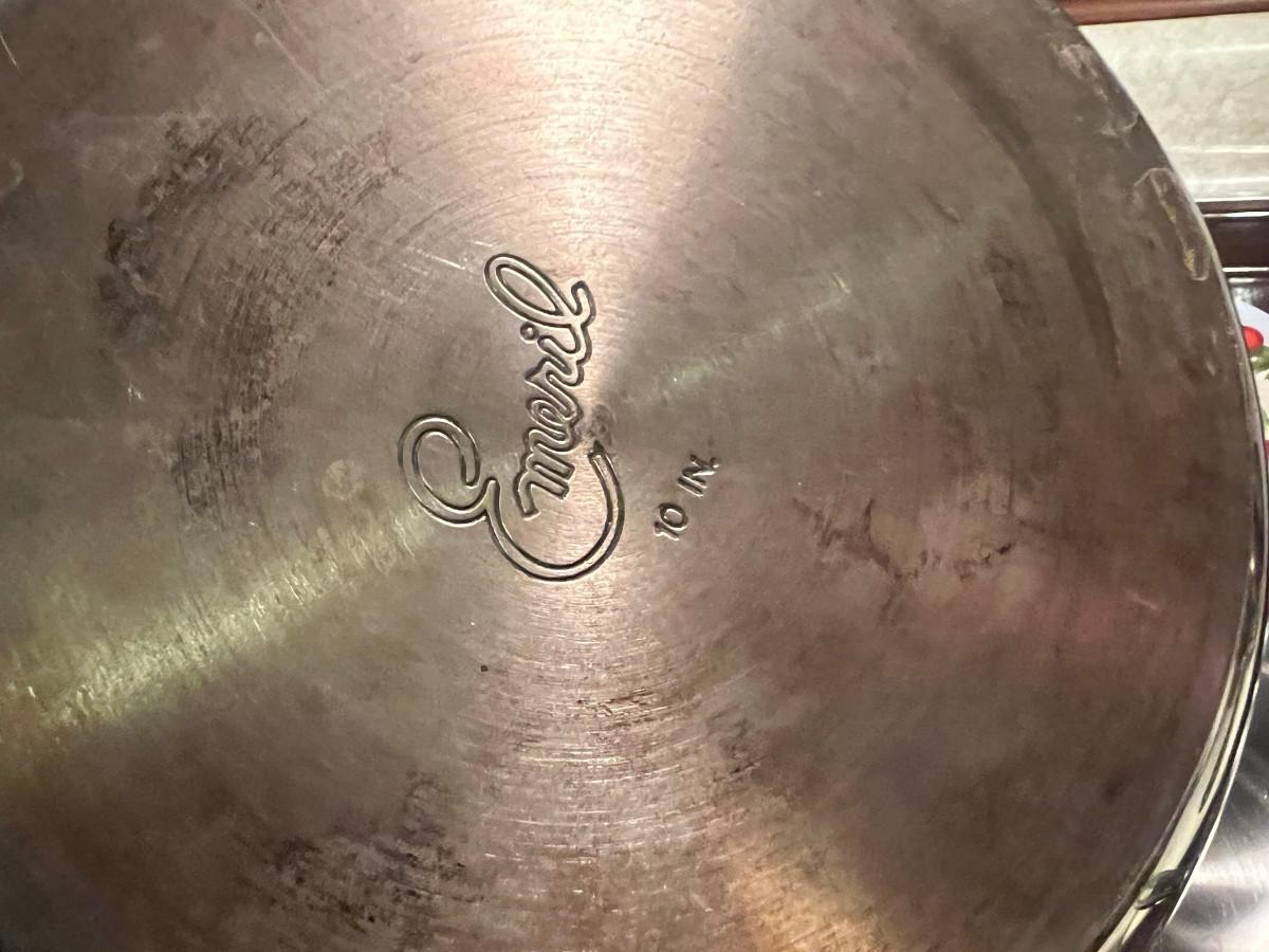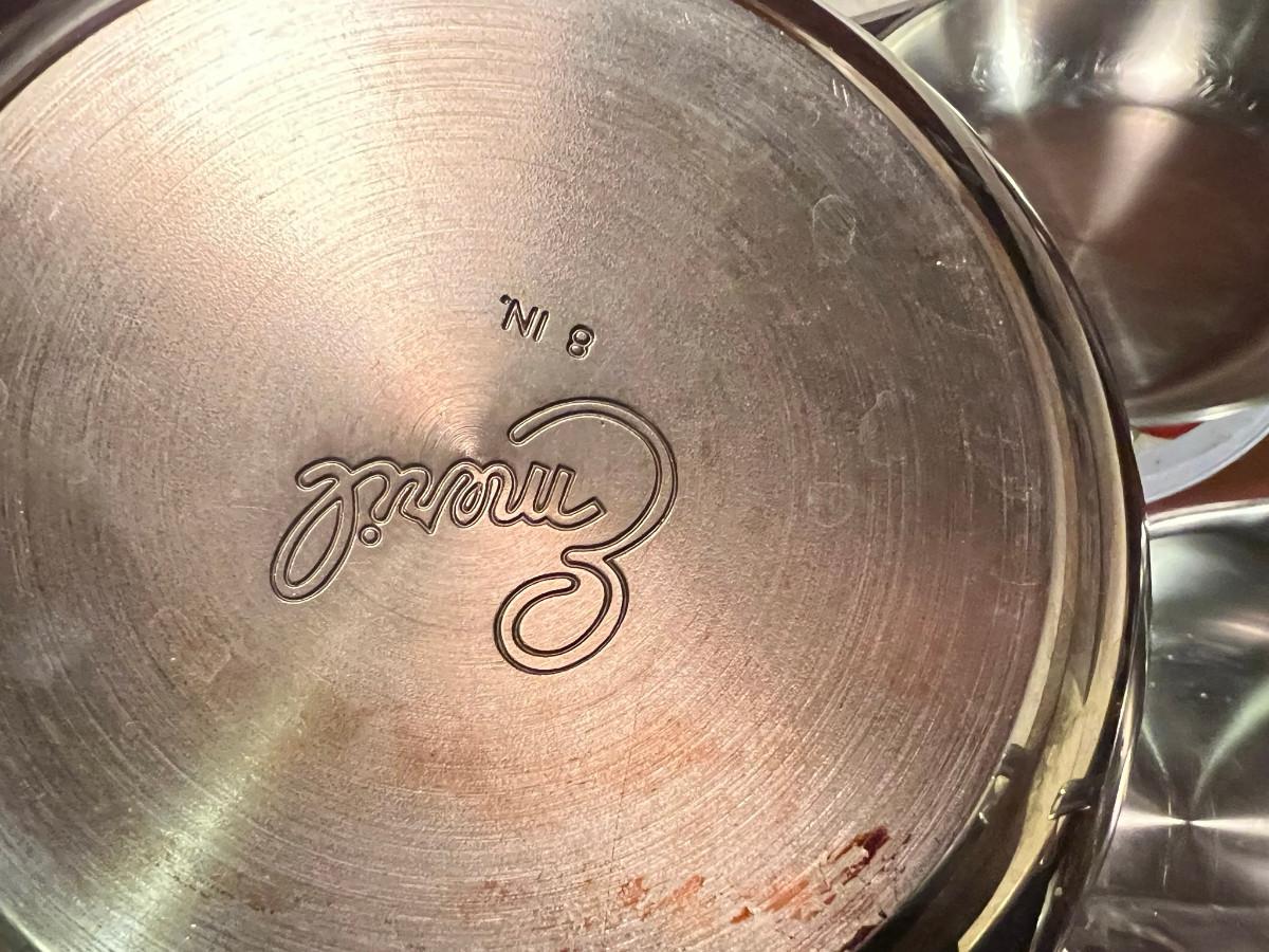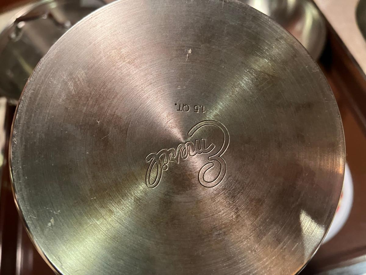 Emeril Pots and Pans: 6 quart pot with lid, 3 quart pan with lid, 10" fry pan, 8" fry pan, 3 qt pot with lid, 1.5 quart pot, 1 quart pot with lid