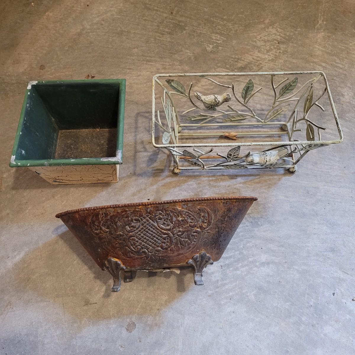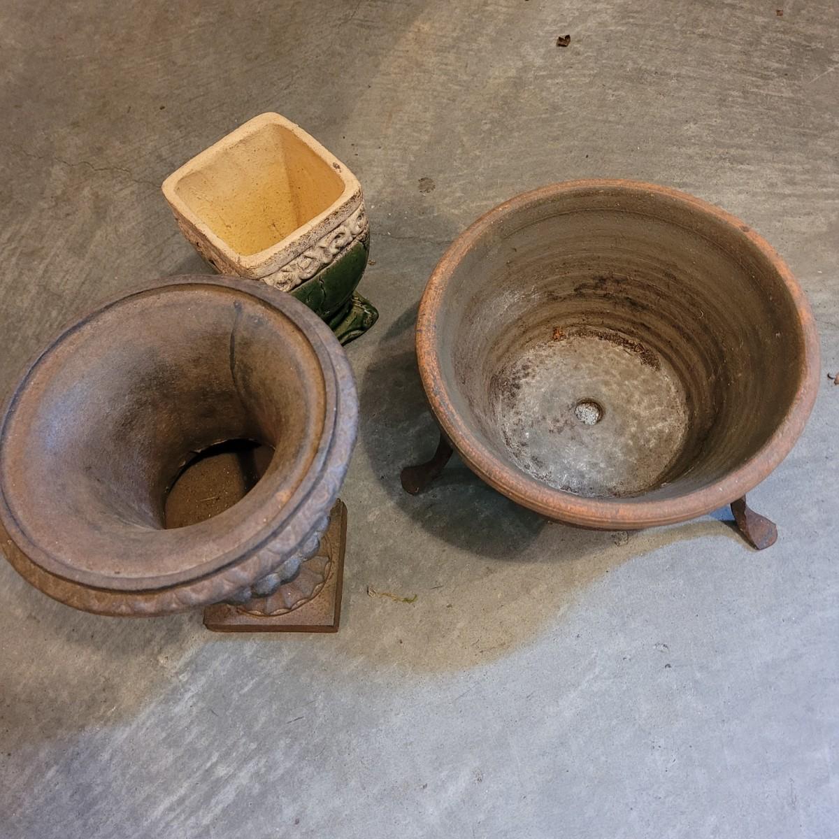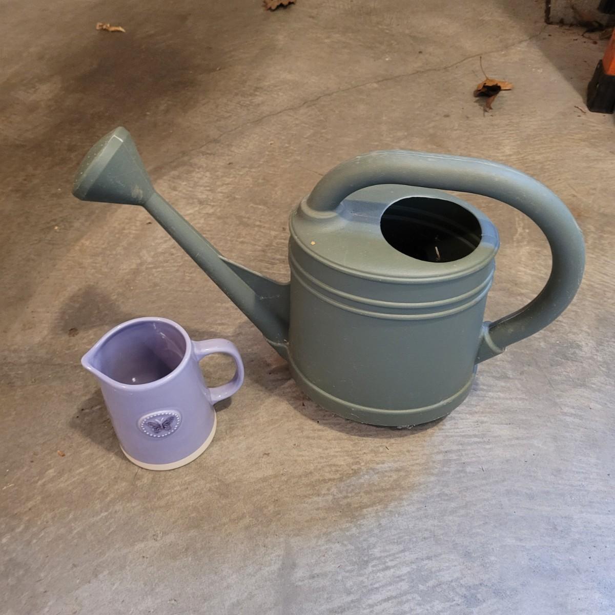 This lot is for various plant pots, holders, pitchers, and watering cans. 20 total pots of various sizes. Most are ceramic while some are plastic. Three metal plant holders including a bag of decorative pebbles. One plastic watering can, and decorative ceramic pitcher. Perfect for sprucing up your potted plant area! Plastic watering can measures 20" x 6" x 15"H.