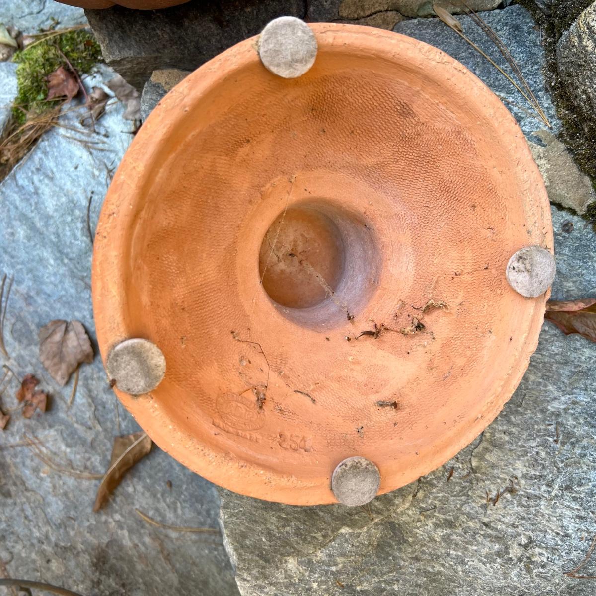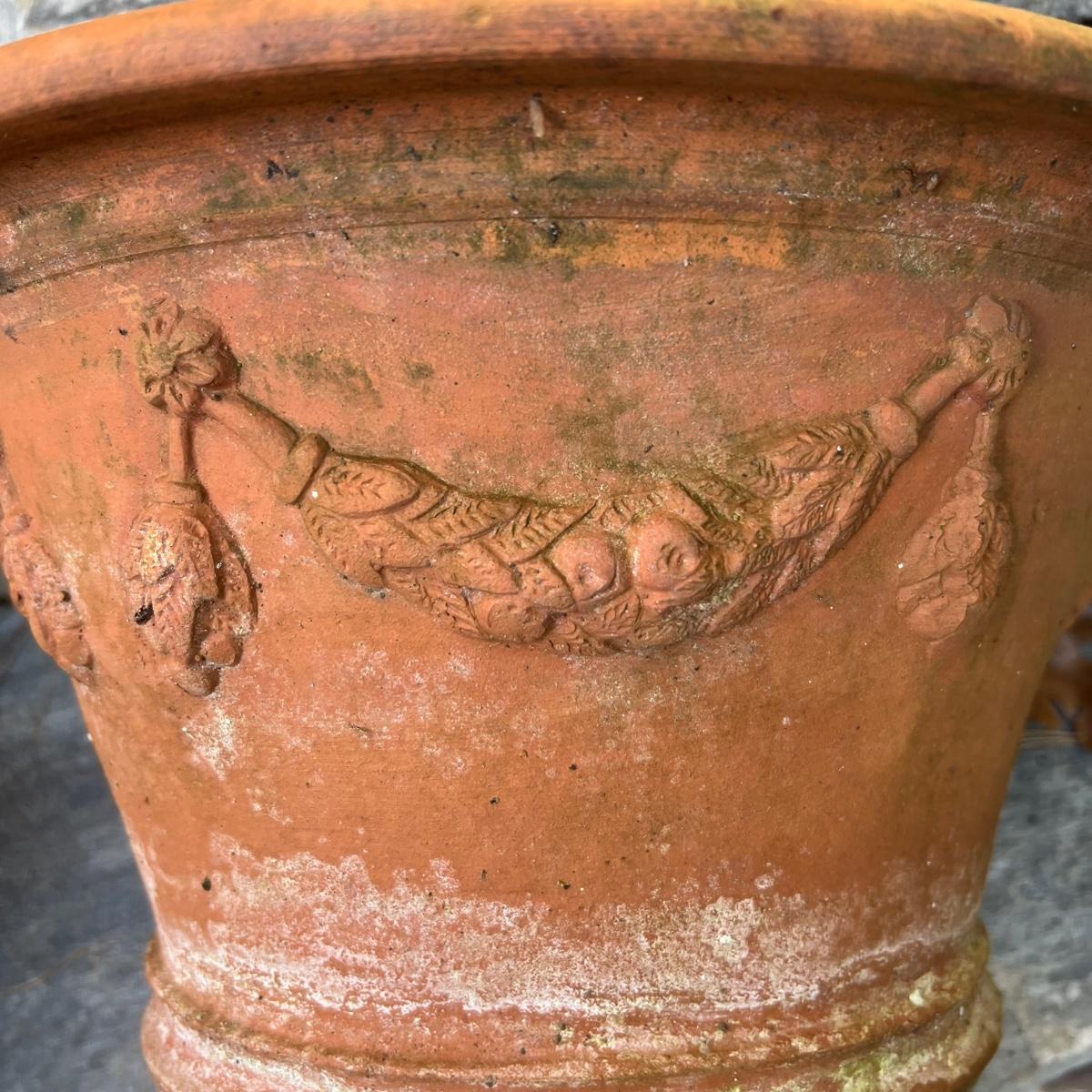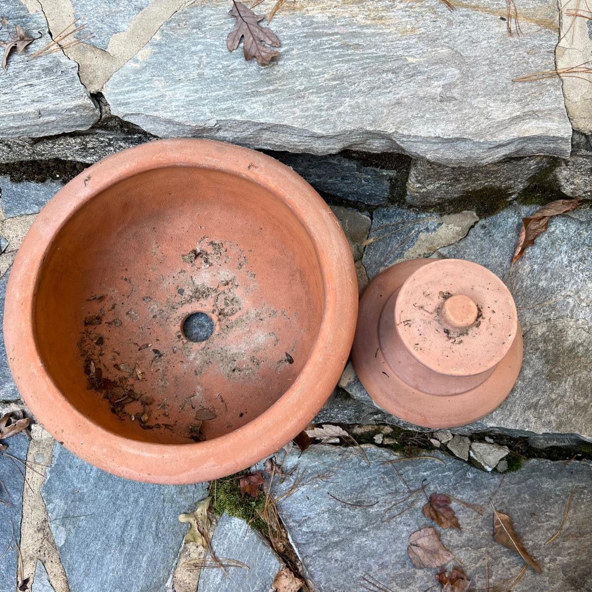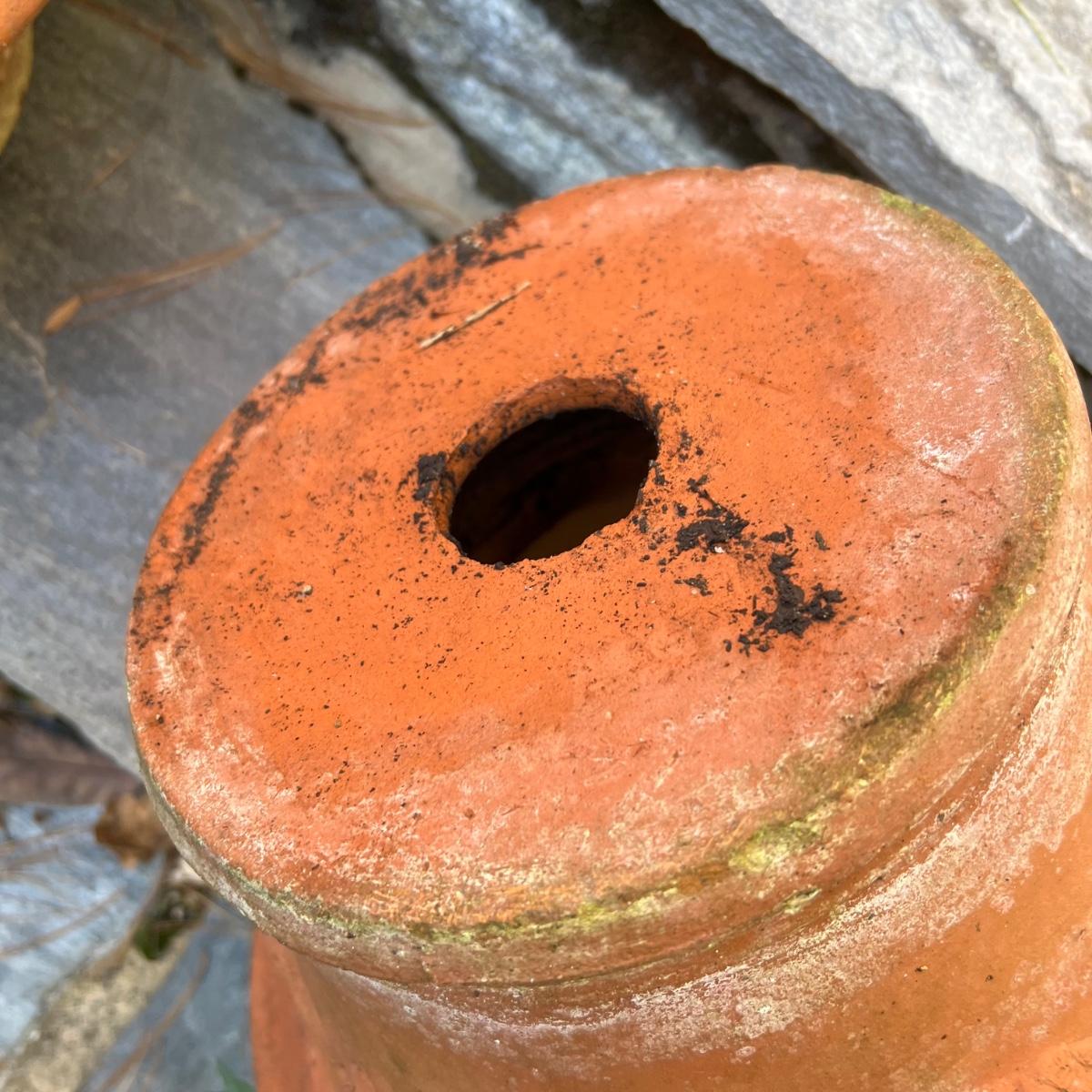 This evergreen Arborvitae plant, likely a Chinese Arborvitae, measures 62”H (including pot, this pot is 18”D). There is a minor chip near the rim, see image. The metal plant stand is included, it has plastic casters. A pair of terracotta pots along with a terracotta pedestal pot with plastic insert are also included.