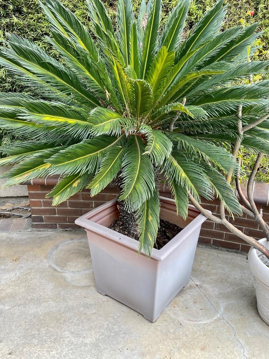 Large Potted Sago Palm in Square Pot. Nicely established, could be replanted into bigger pot or ground.