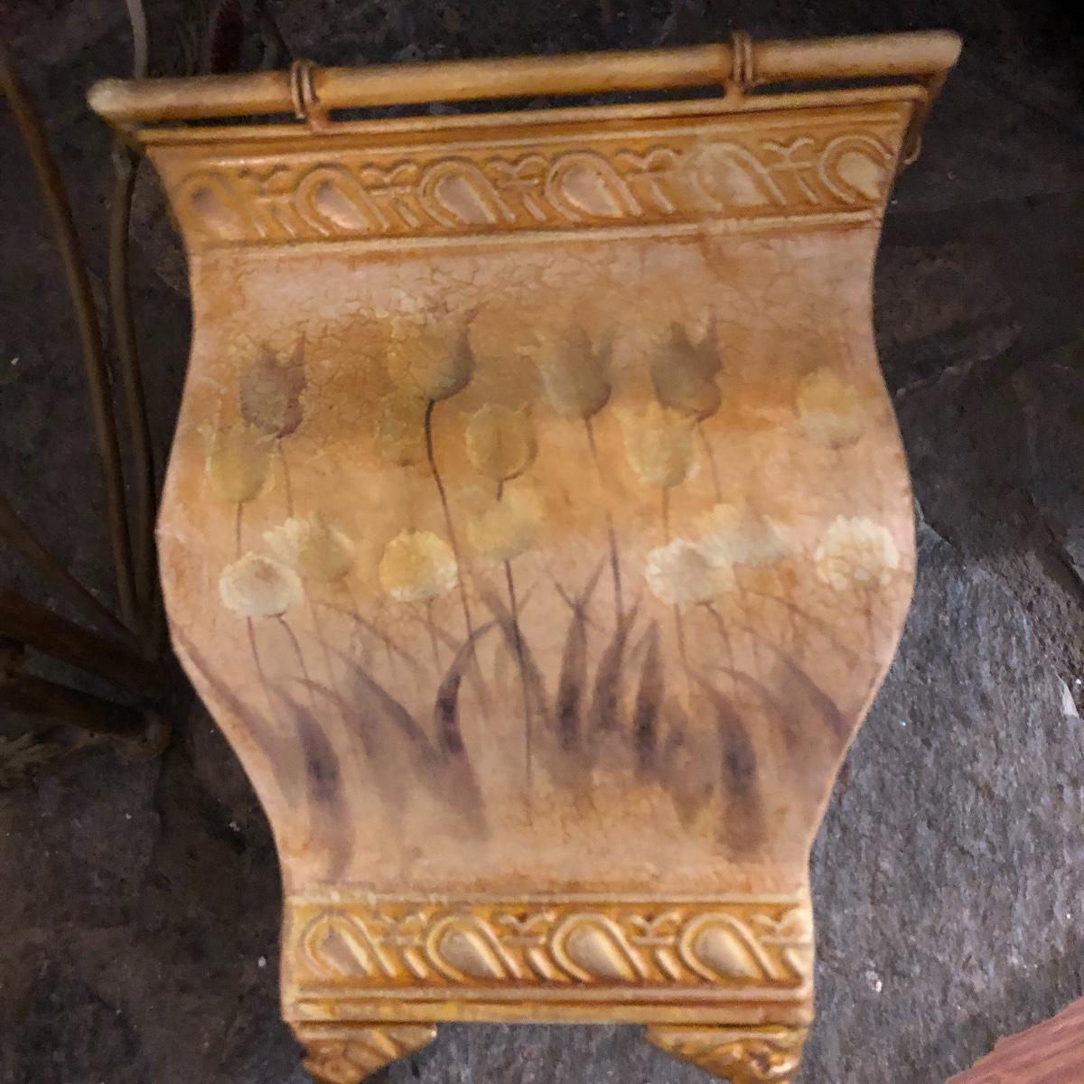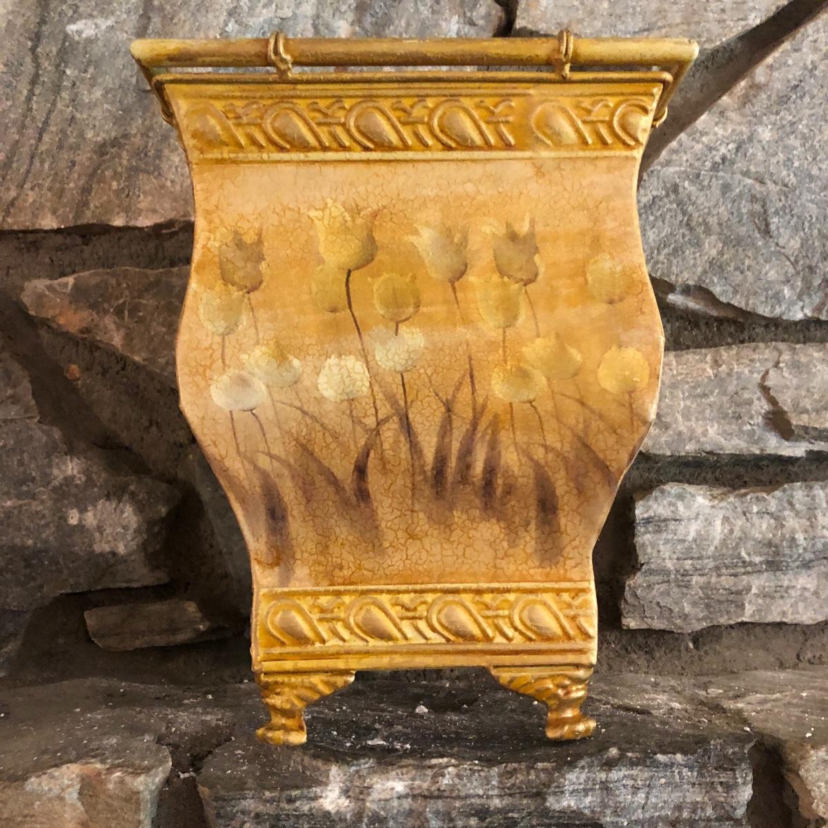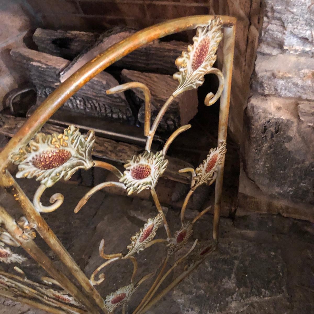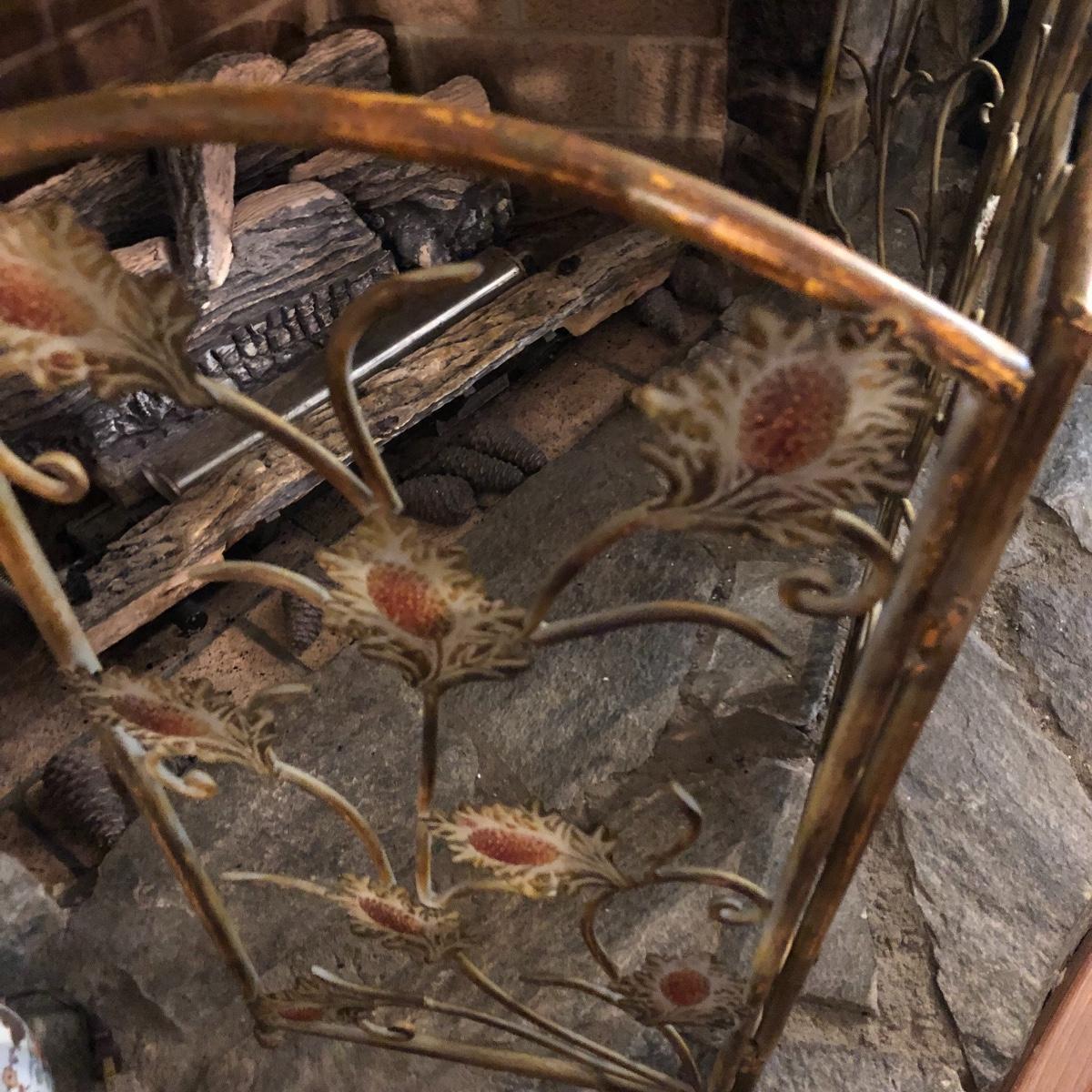 The fireplace screen is metal and the sides fold in. The front panel measures 25” with both of the sides being 12” wide and it is almost 28” tall. The square planter is 10.5” tall and it is metal. Local pick up only.