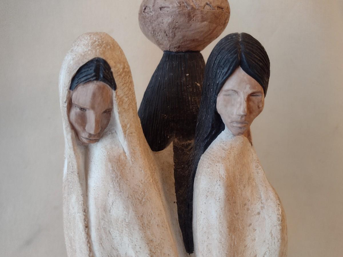 Large Hand-Crafted Pottery Three Faces Figural Statuette by Austin Studios
