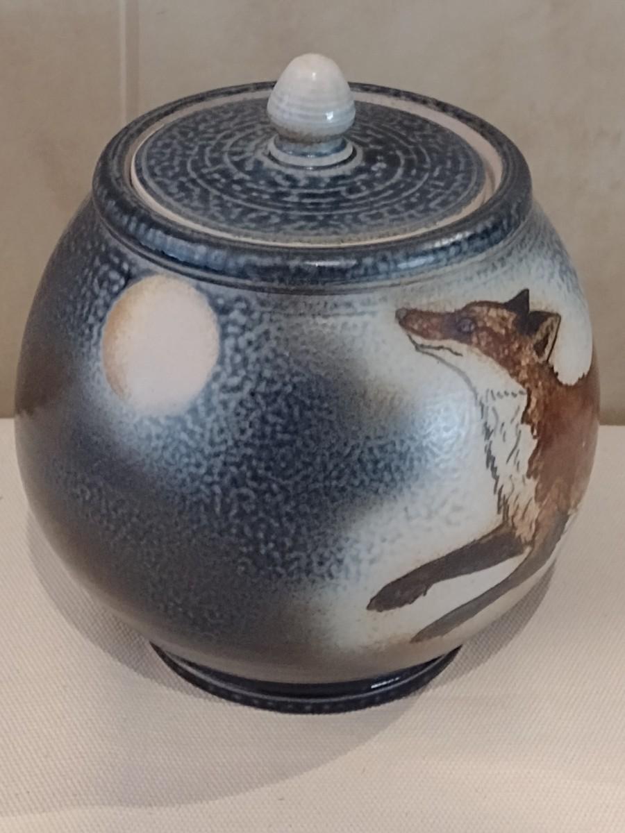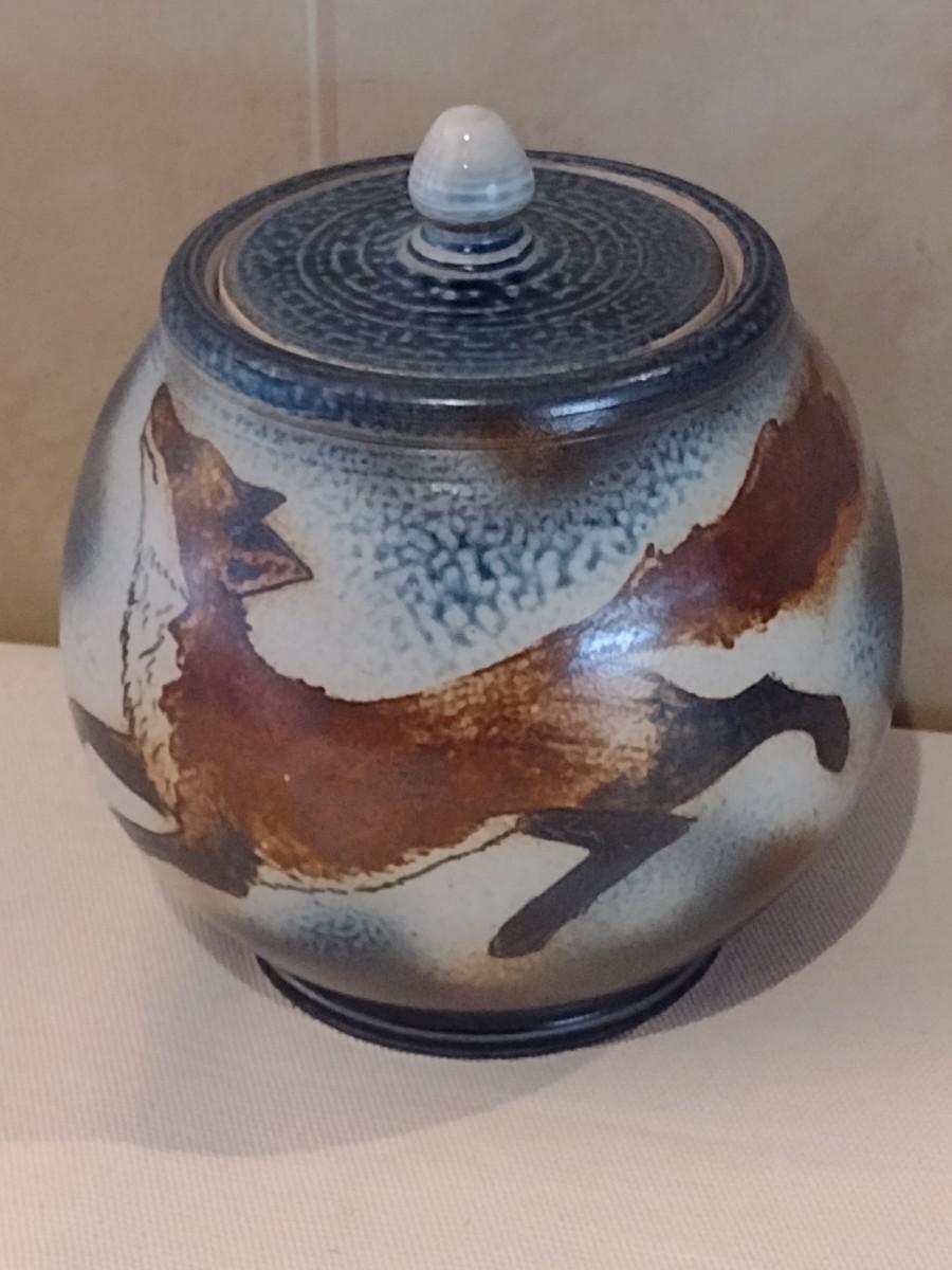 Colorful Charlie Teft Pottery Fox Themed Pottery Lidded Jar