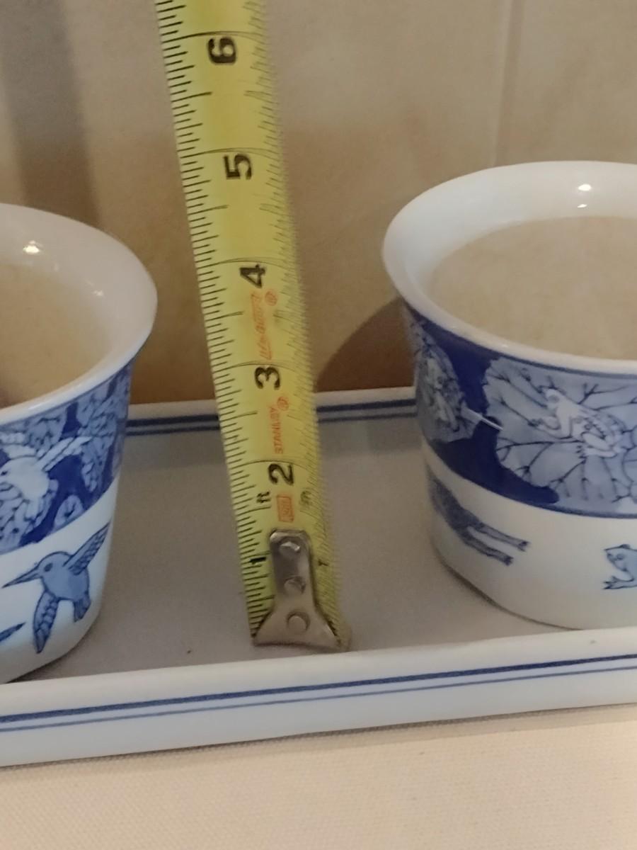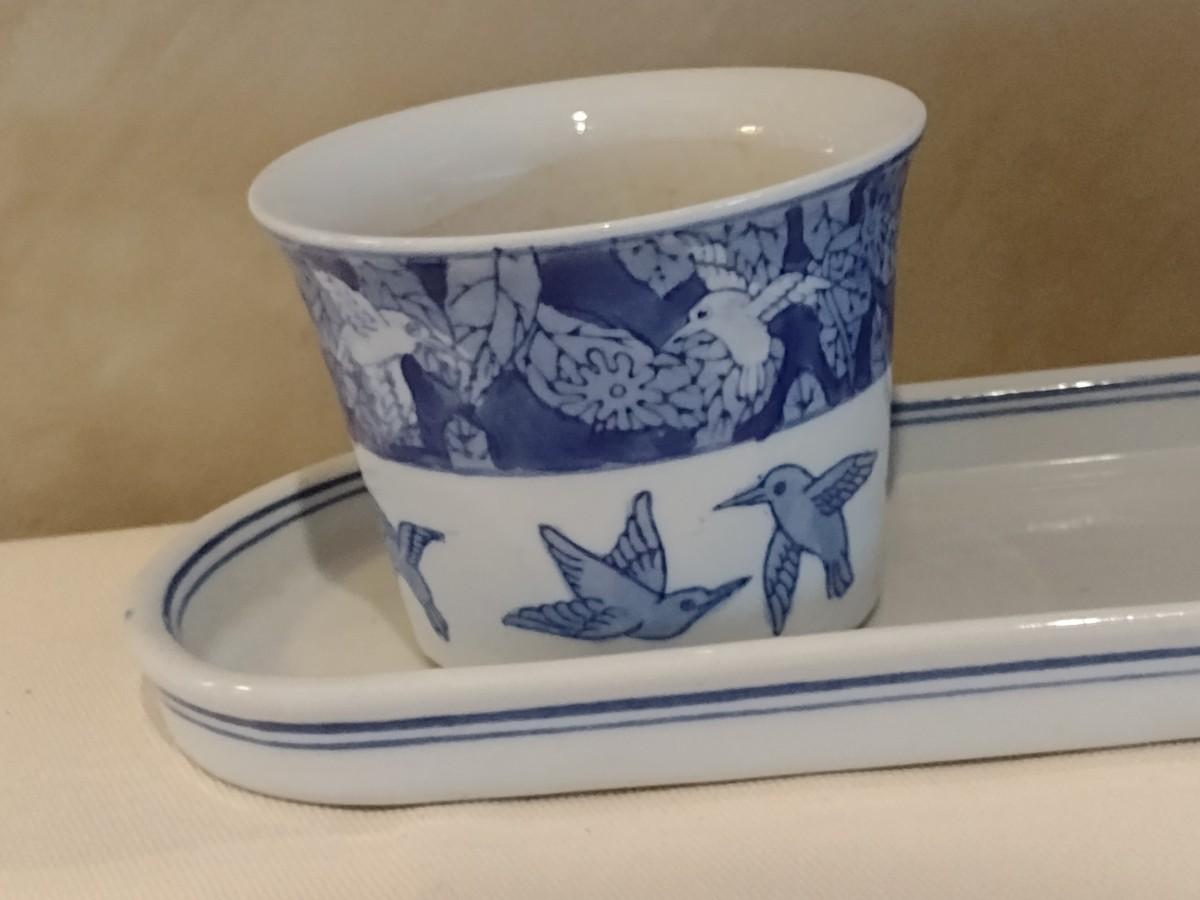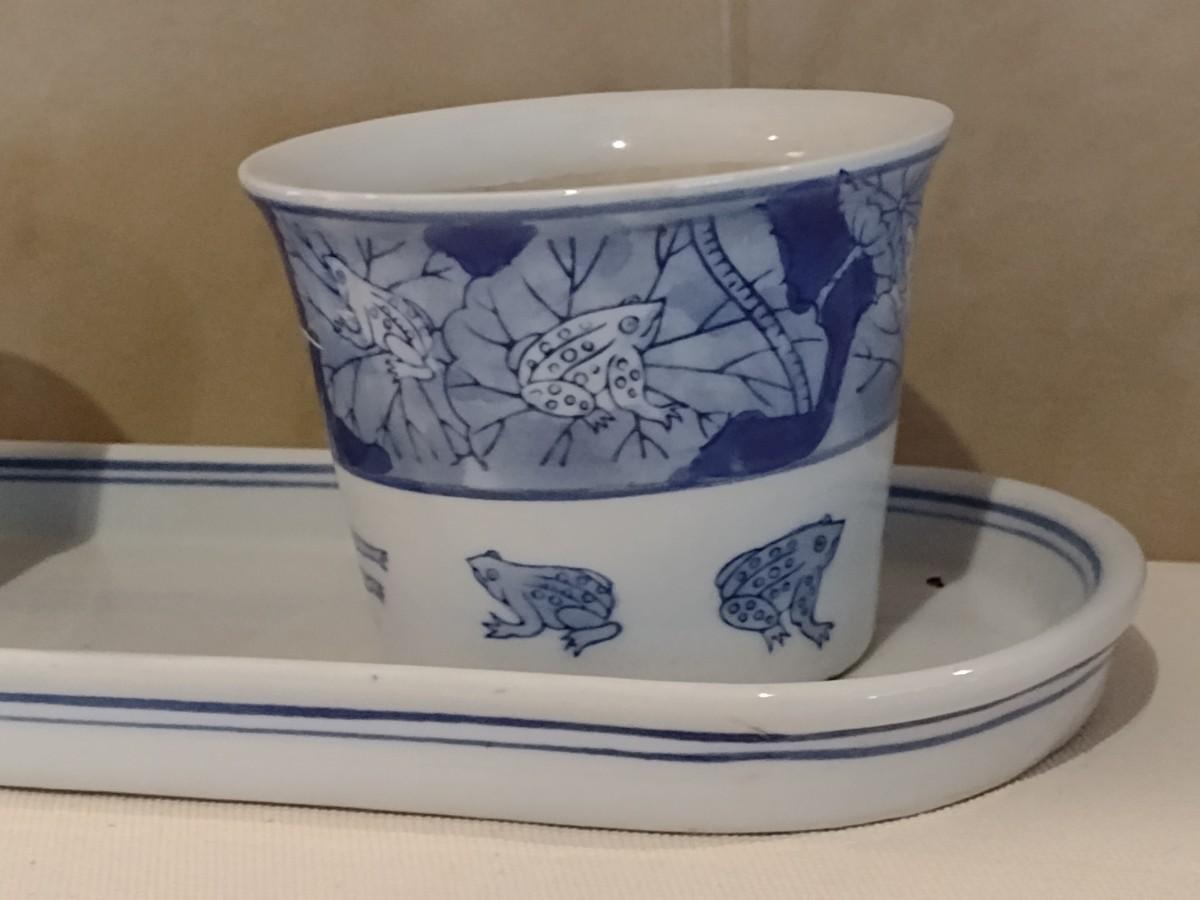 Blue and White Pottery Frog and Hummingbird Planter Pots with Tray