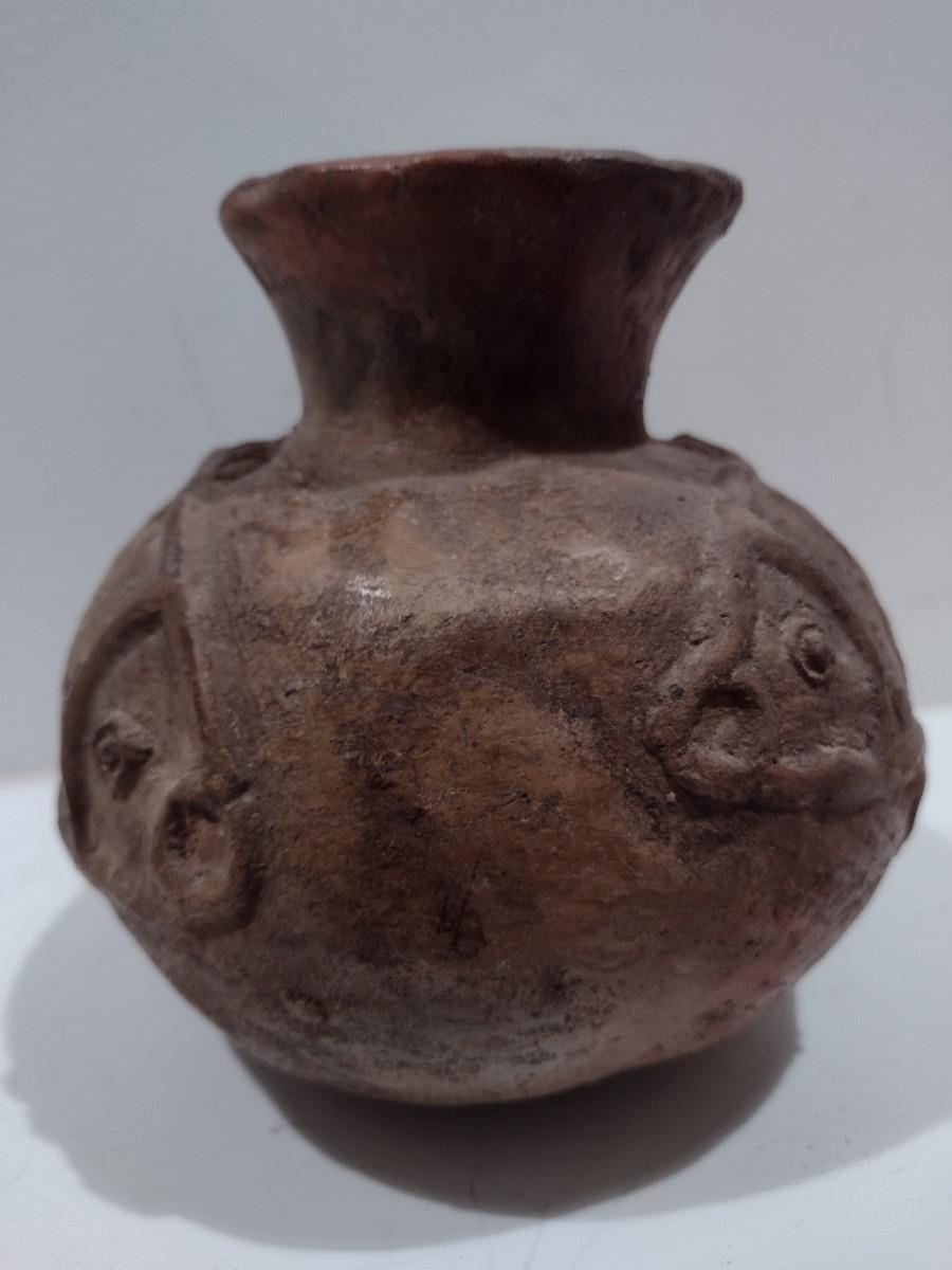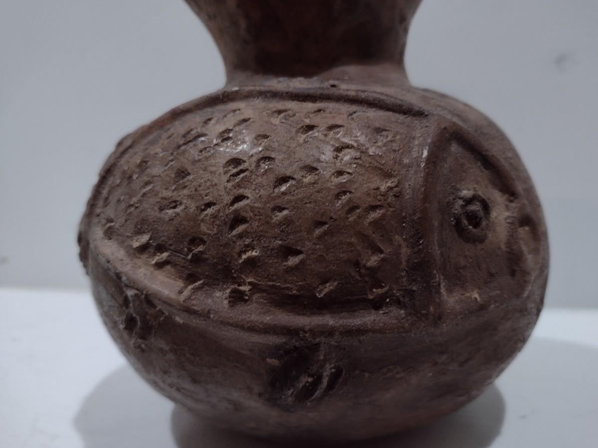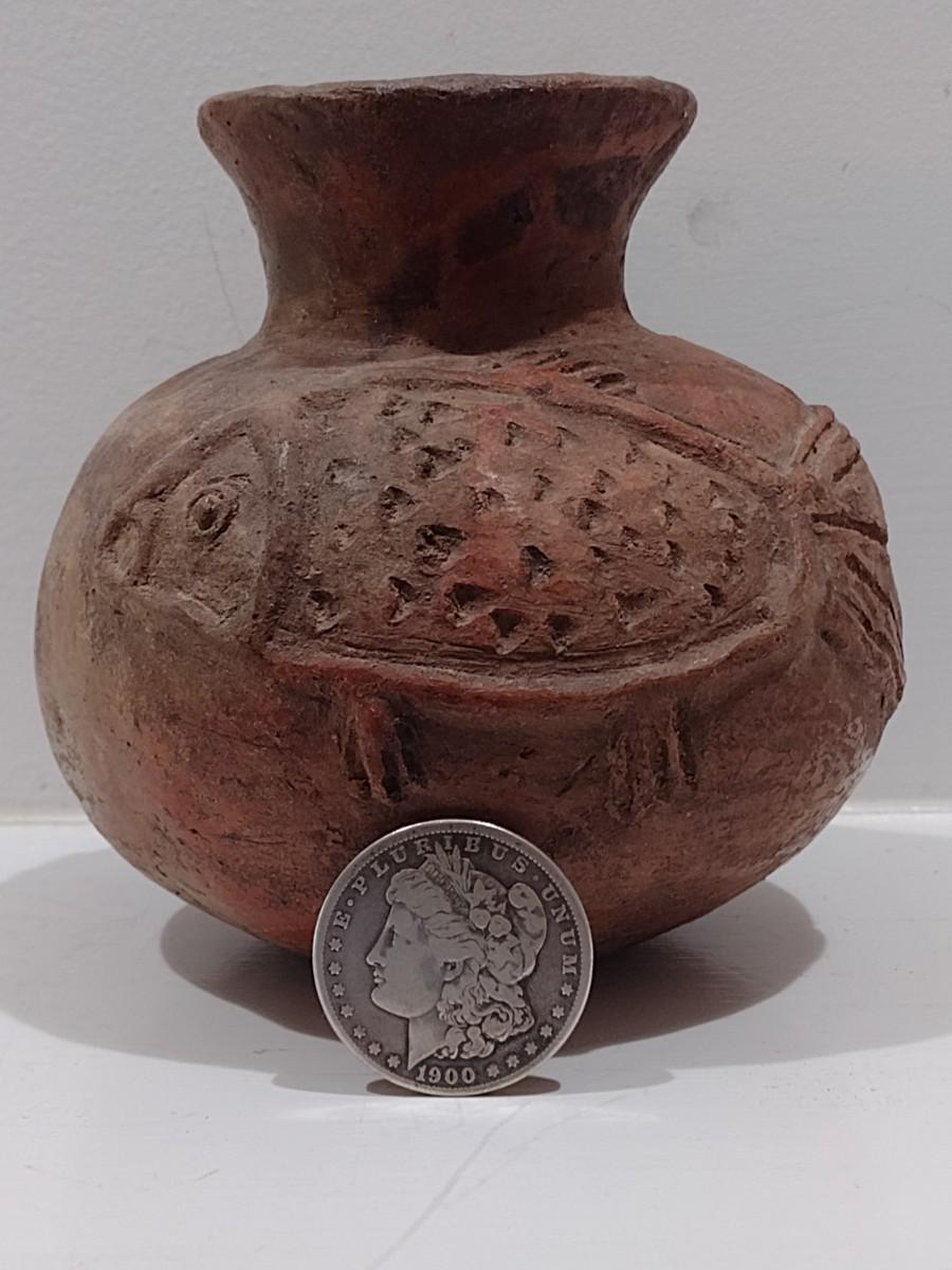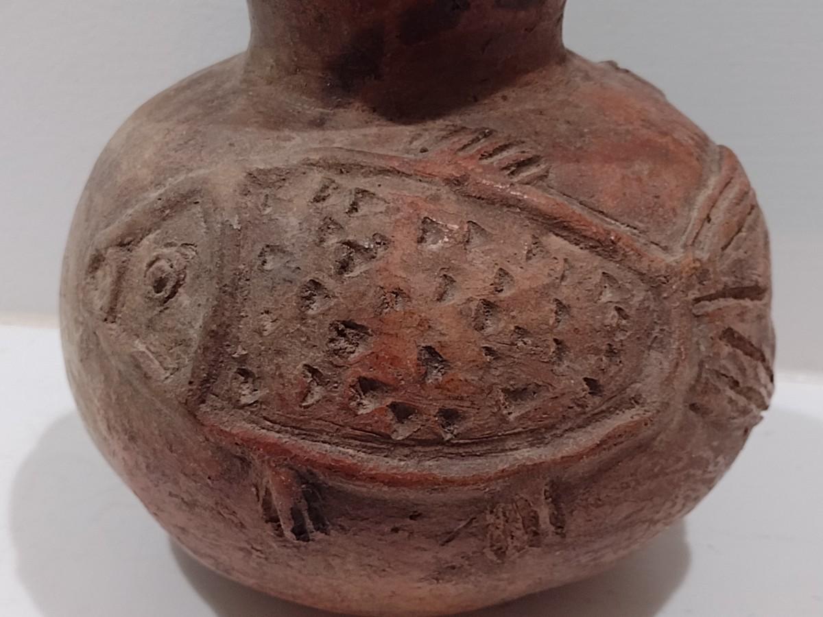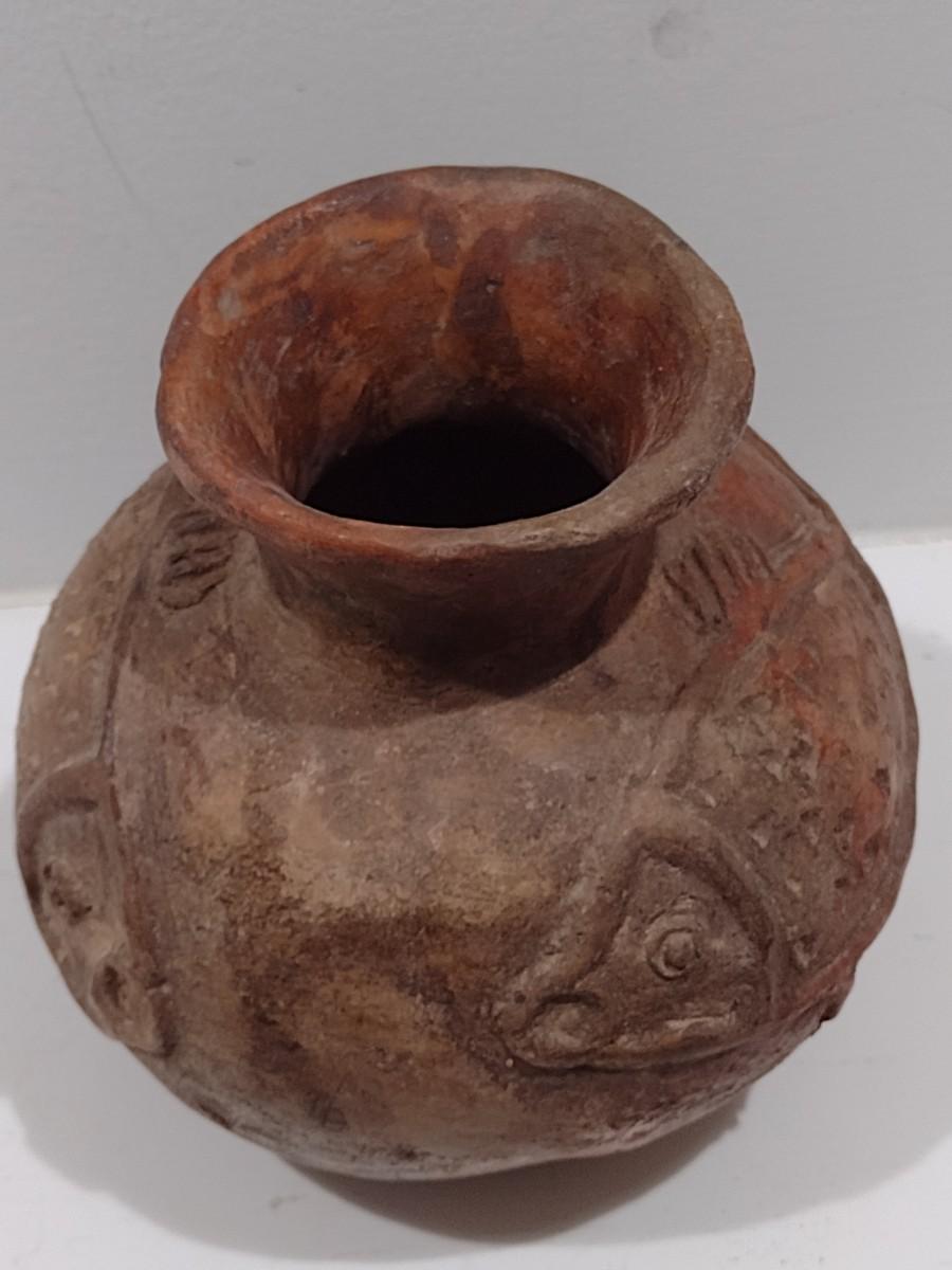 Antique Native American Clay Pottery Fish Pot