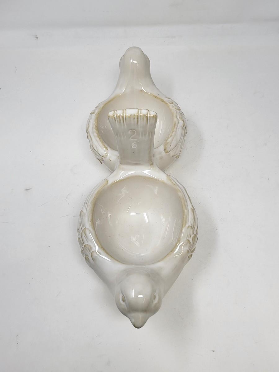 Collectible Pottery Barn, off white glazed dove candy/nut dish. 13" x 5" x 4". It has two connected doves back to back with their tales forming the center handle.