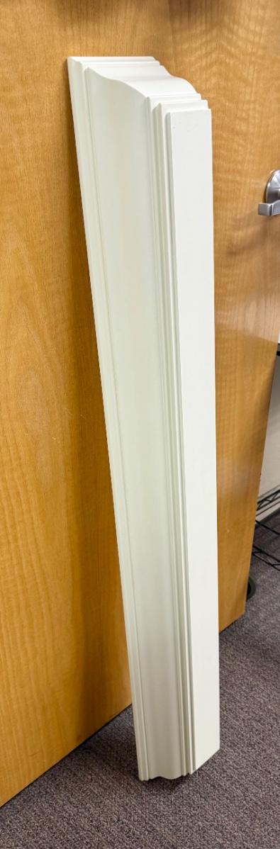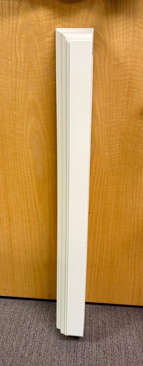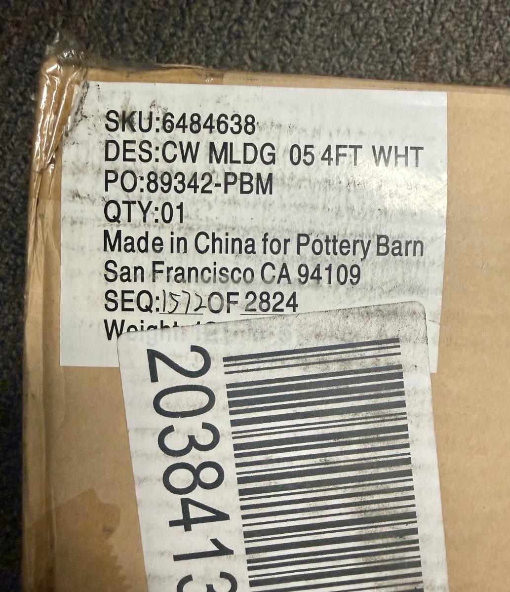 New in original box, includes installation instructions and hanging hardware. Painted a semi-gloss off white color.