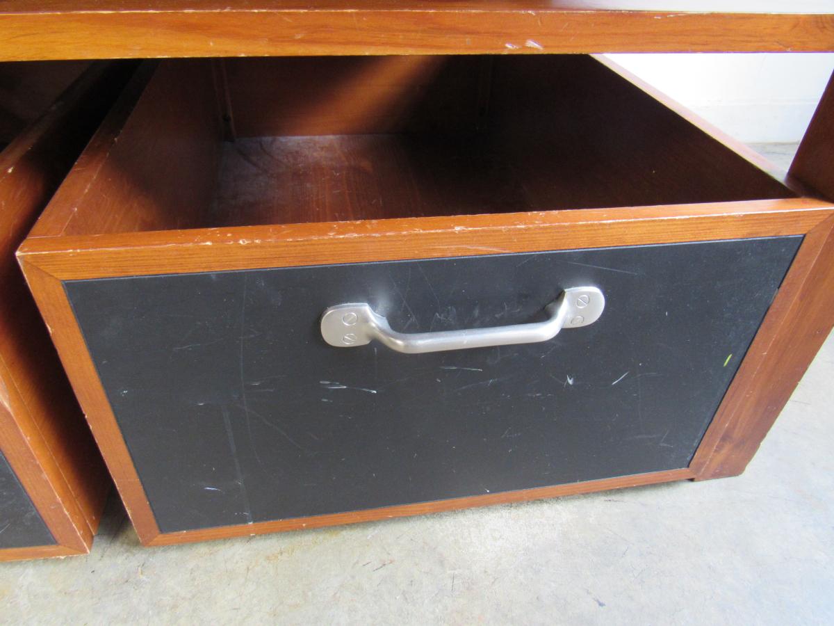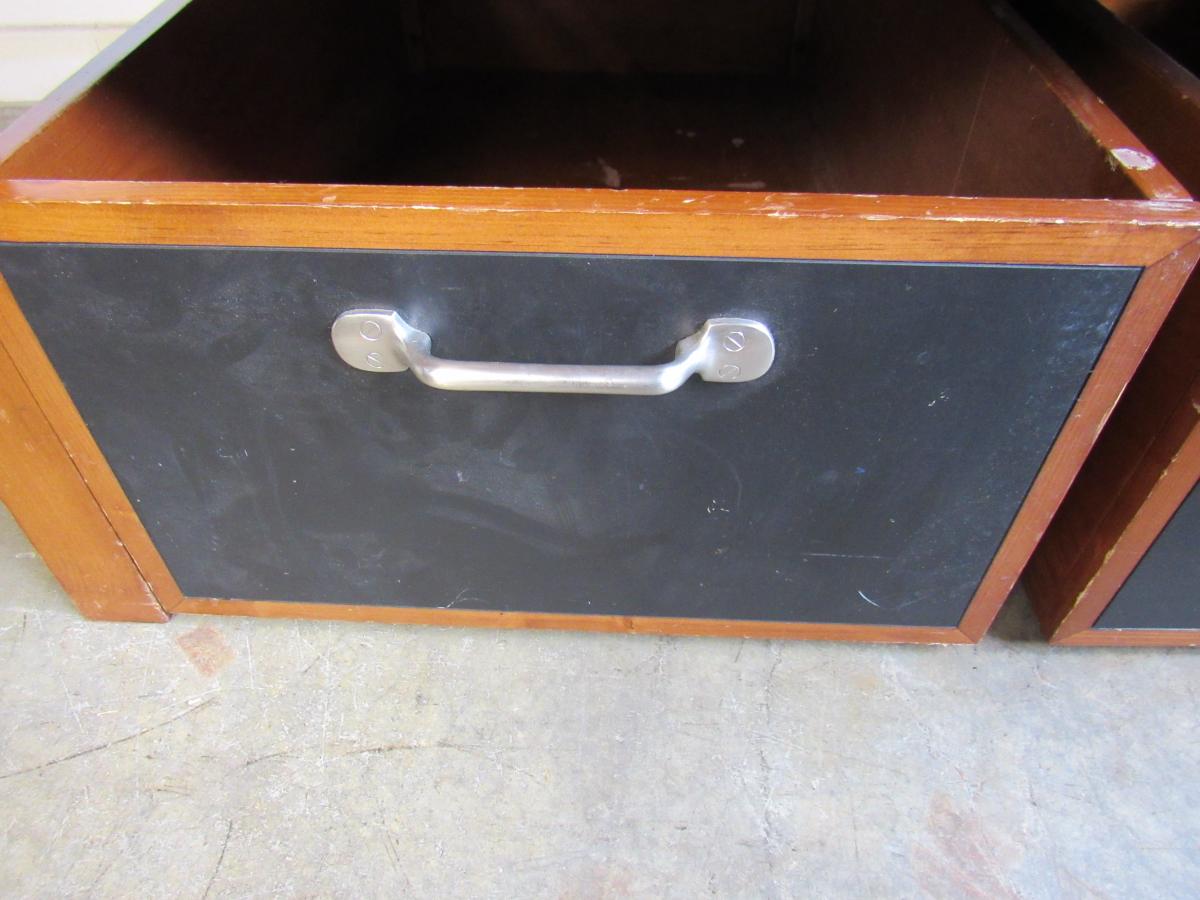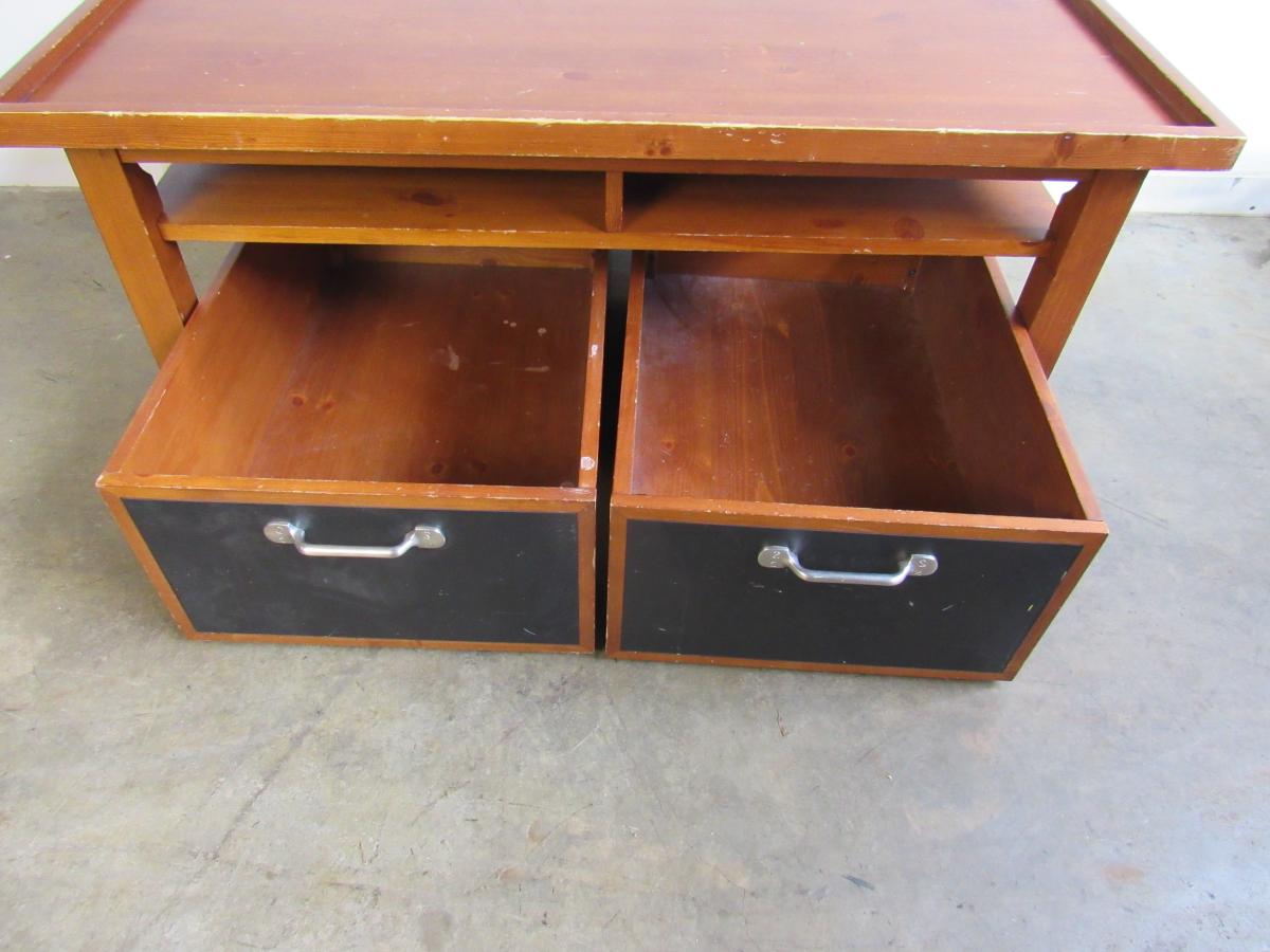 Pottery Barn activity table. 49” x 34” x 23”. Shows some wear. Has two matching drawers with chalk board fronts.
