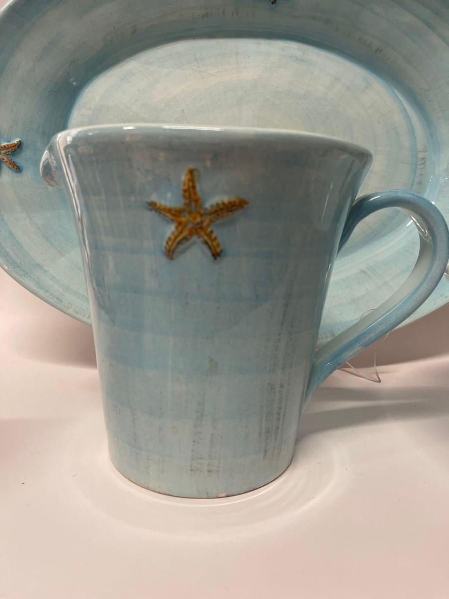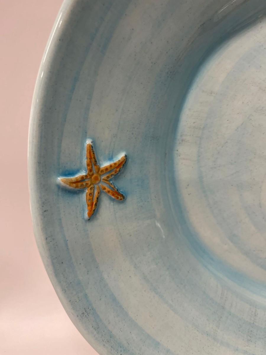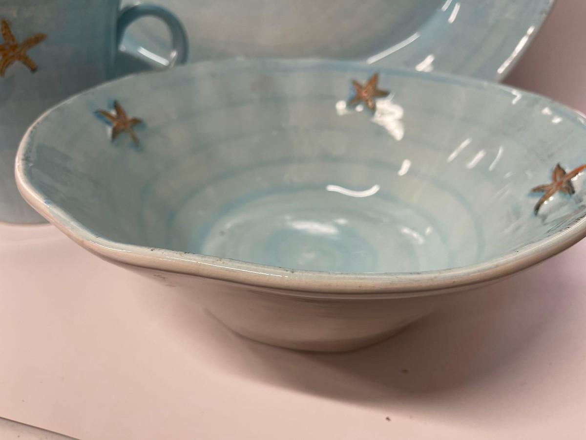 <p>Pottery Barn Blue Ceramic Starfish Serving Dishes. All very good condition. Minor crazing on a couple of pieces. </p>