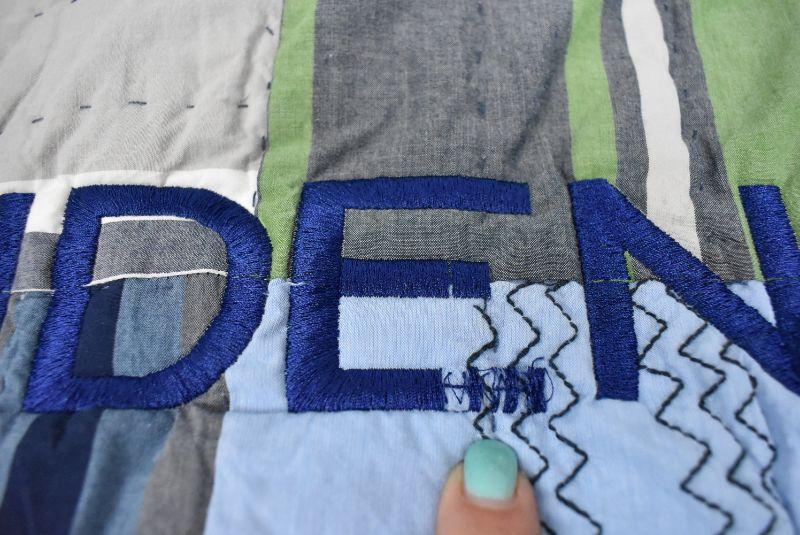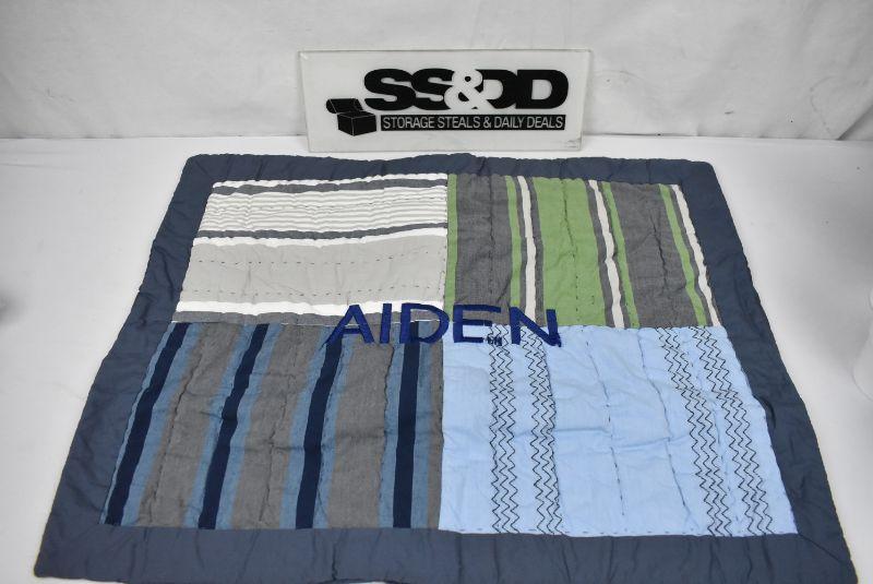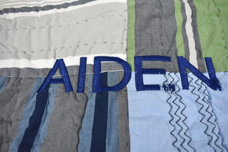Pottery Barn Kids Green Blue Gray "Aiden" Embroidered Quilted Pillow Sham 20x26