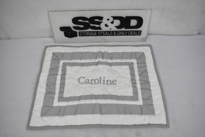 Pottery Barn Kids Harper Toddler Pillow Sham 12"x16" Embroidered "Caroline" Gray
