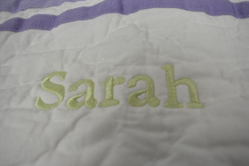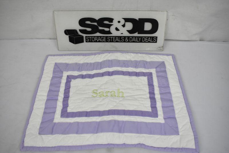 Pottery Barn Kids Harper Toddler Pillow Sham 12"x16" Embroidered "Sarah" Purple