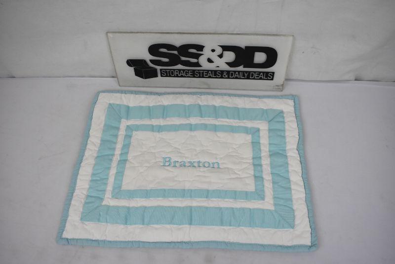 Pottery Barn Kids Harper Toddler Pillow Sham 12"x16" Embroidered "Braxton" Aqua