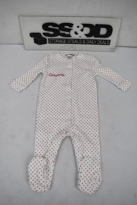 Pottery Barn Kids Sleeper Pajamas 0-3 Mos "Cameron" White Red Polka Dots Holiday