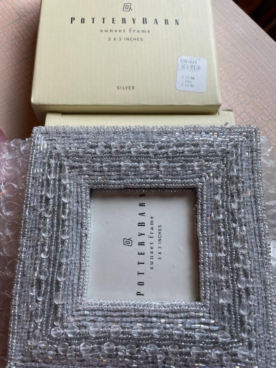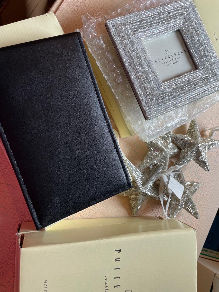 Pottery Barn ornaments, frames and photo albums