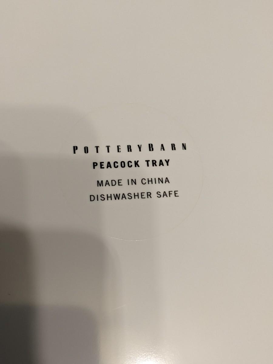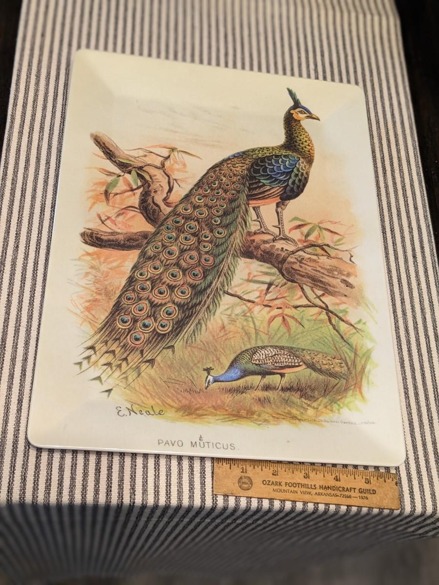 Pottery Barn Peacock Rectangle Tray Pavo Muticus E Neale Melamine 15.5” x 12"