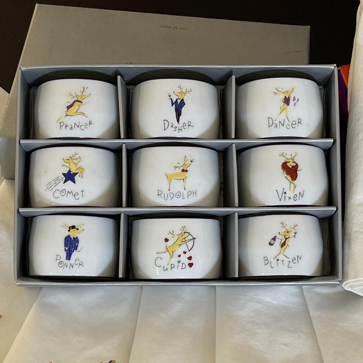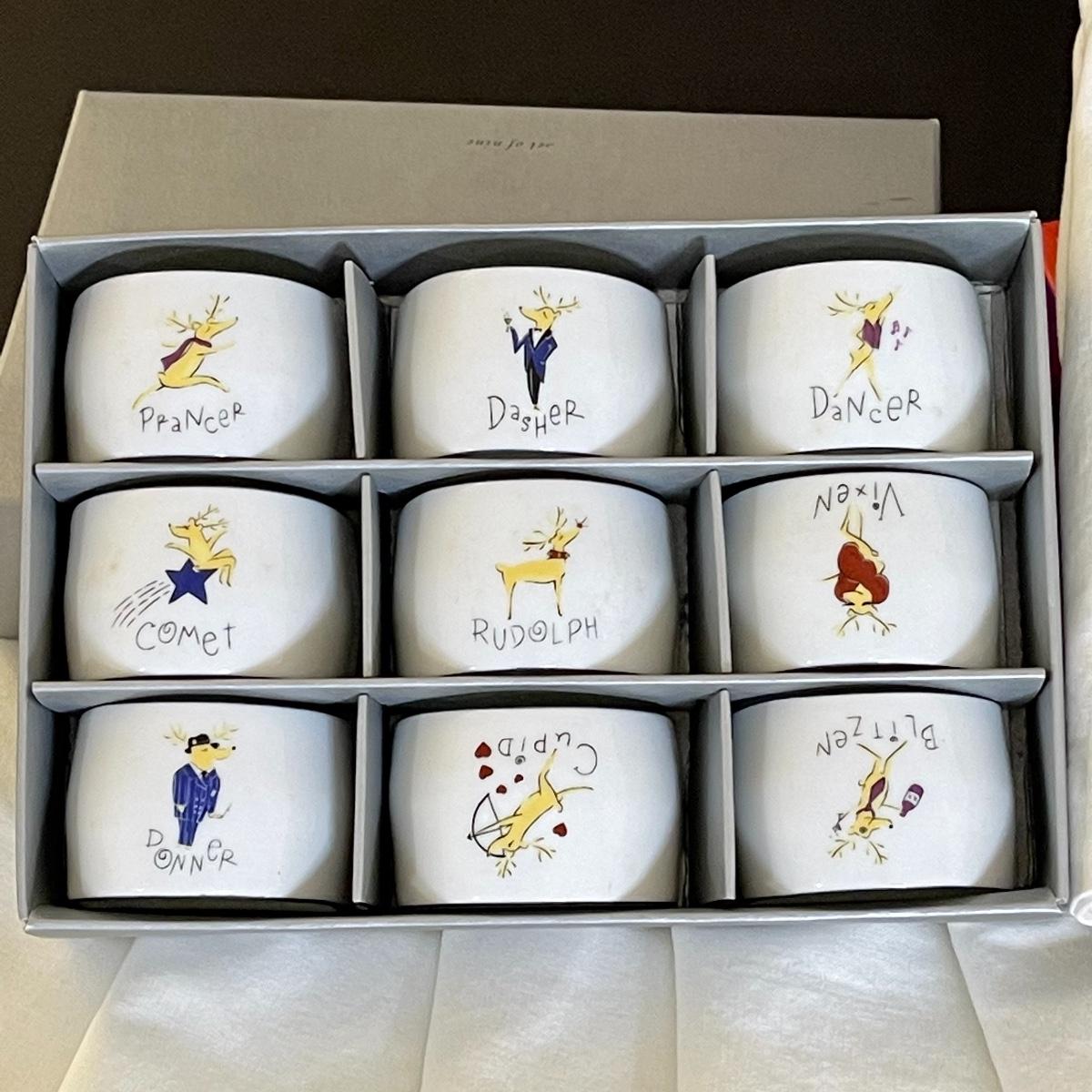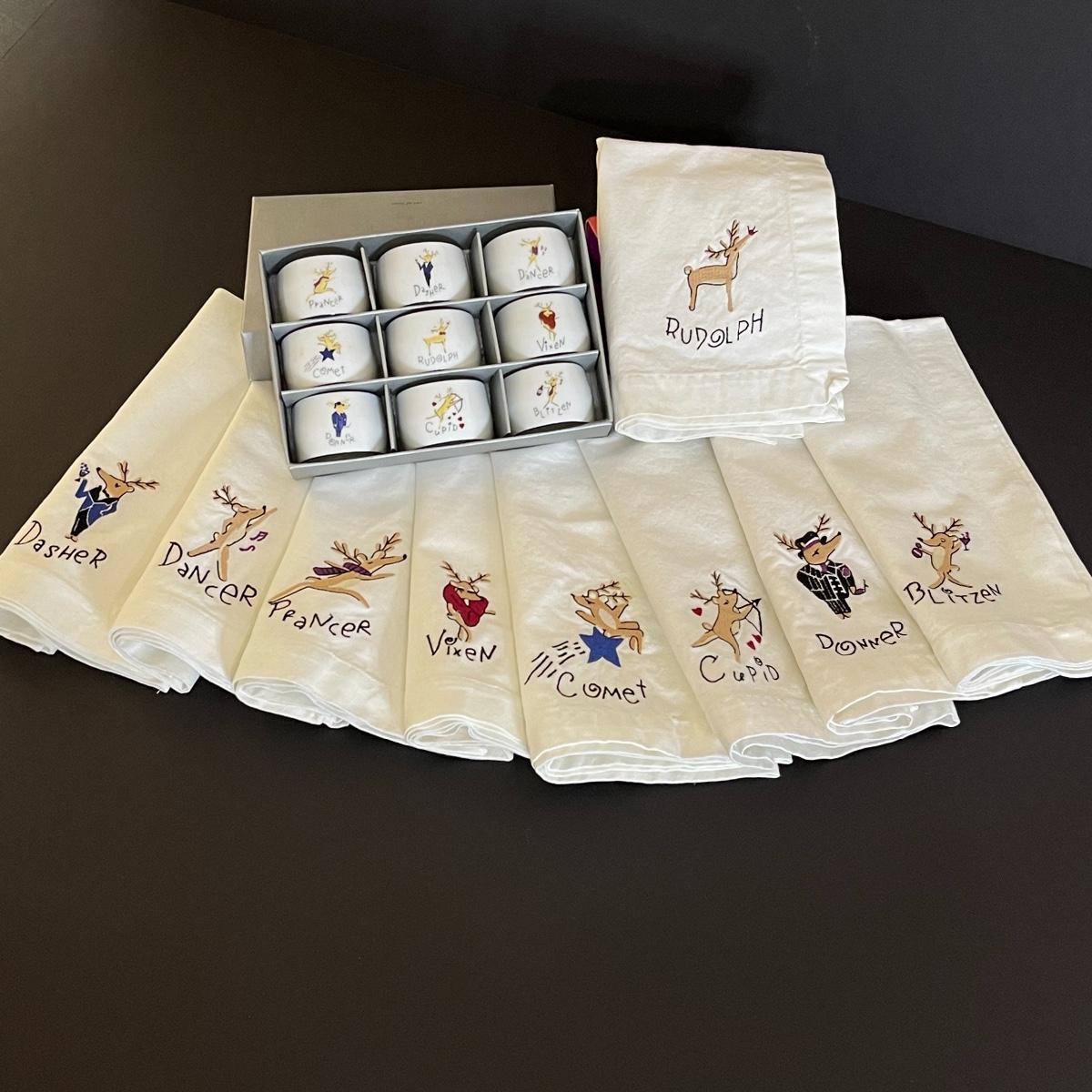 POTTERY BARN Reindeer Napkin Rings and Napkins