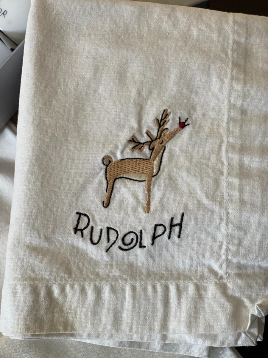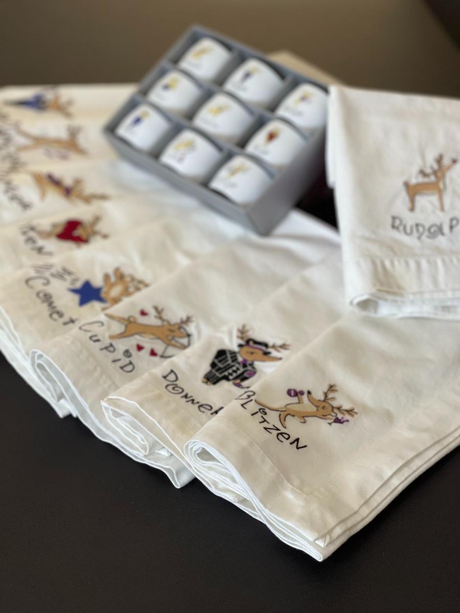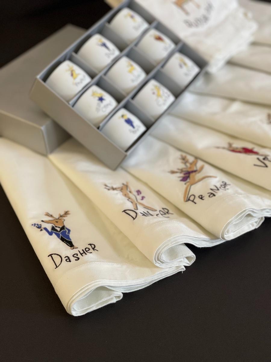 POTTERY BARN Reindeer Napkin Rings and Napkins