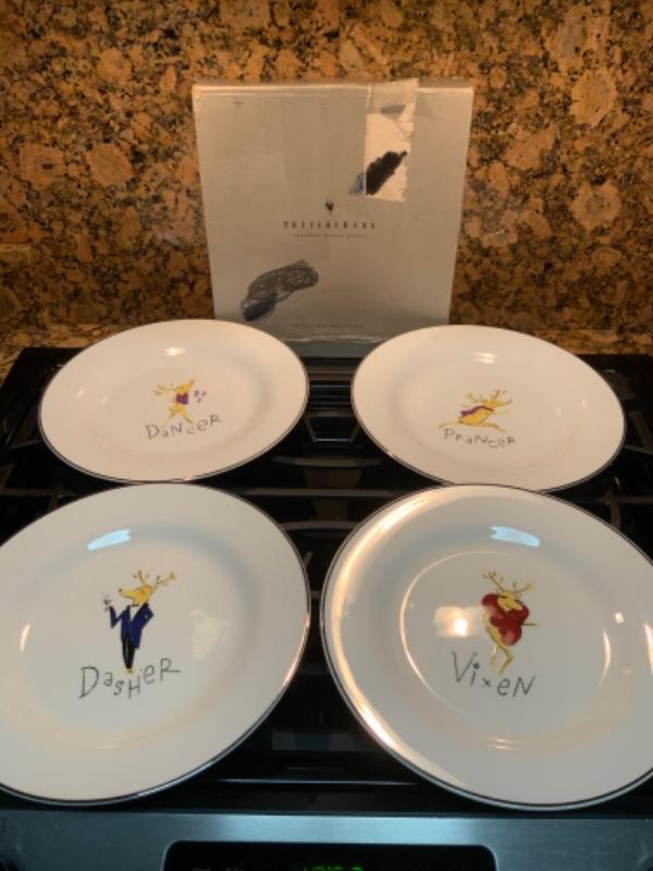 Pottery barn reindeer plate set of 4 lot 2450