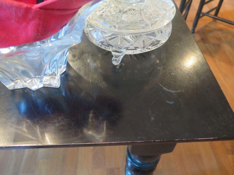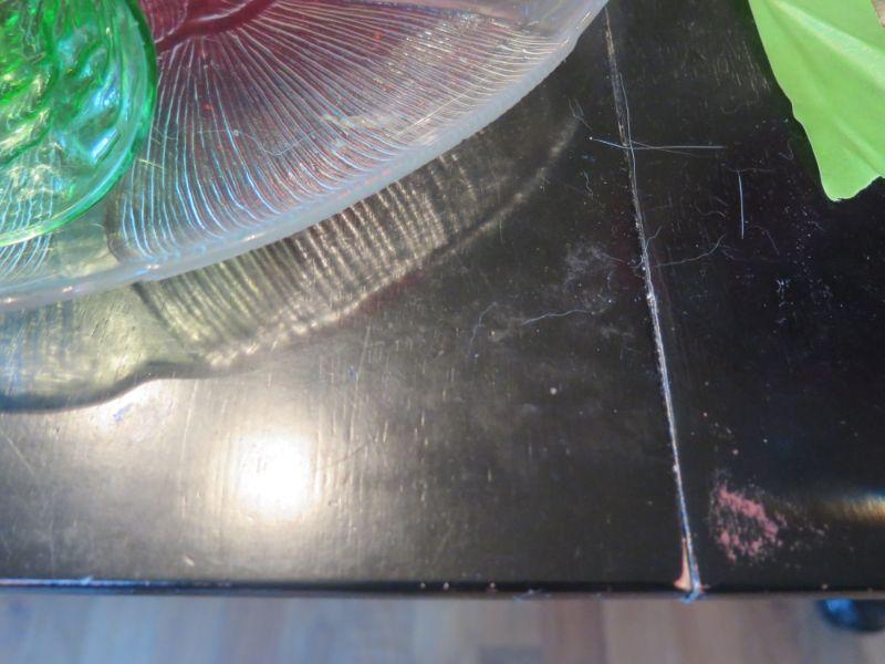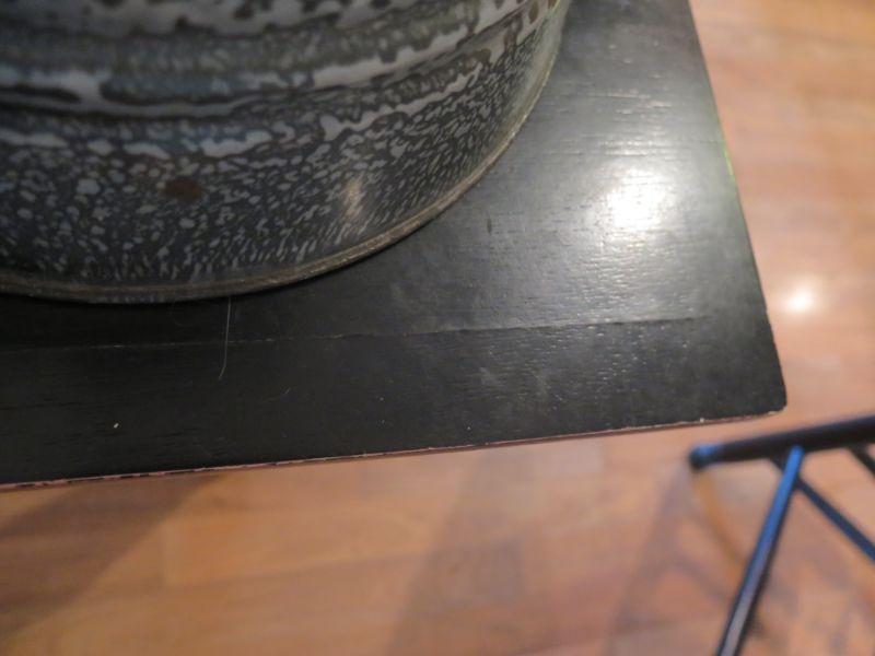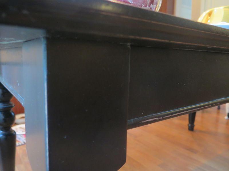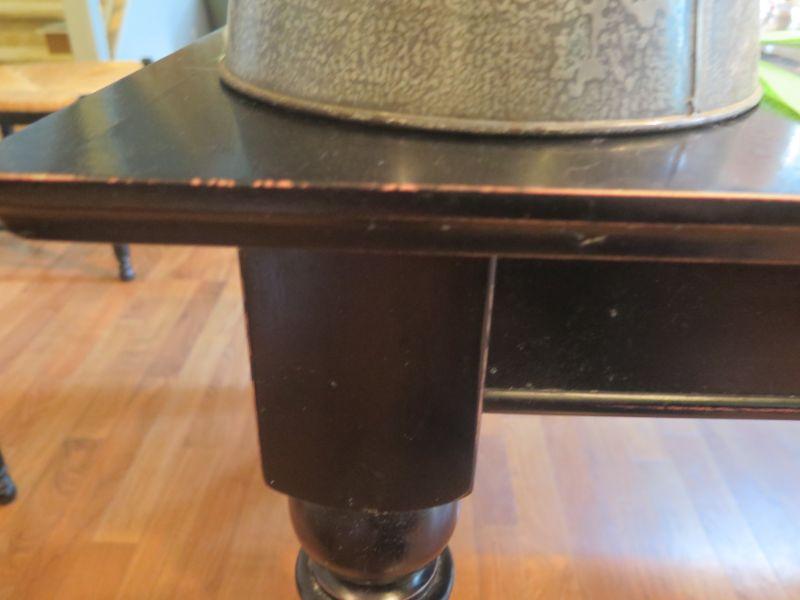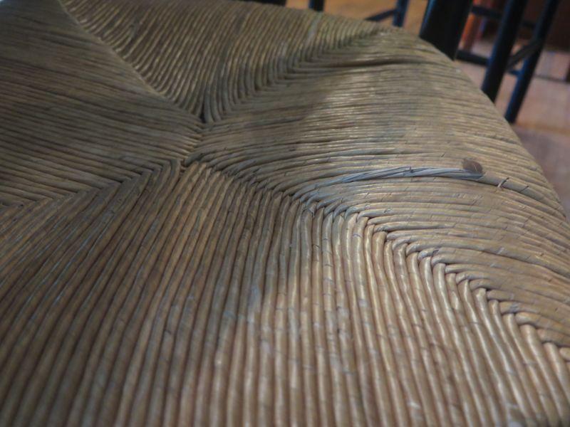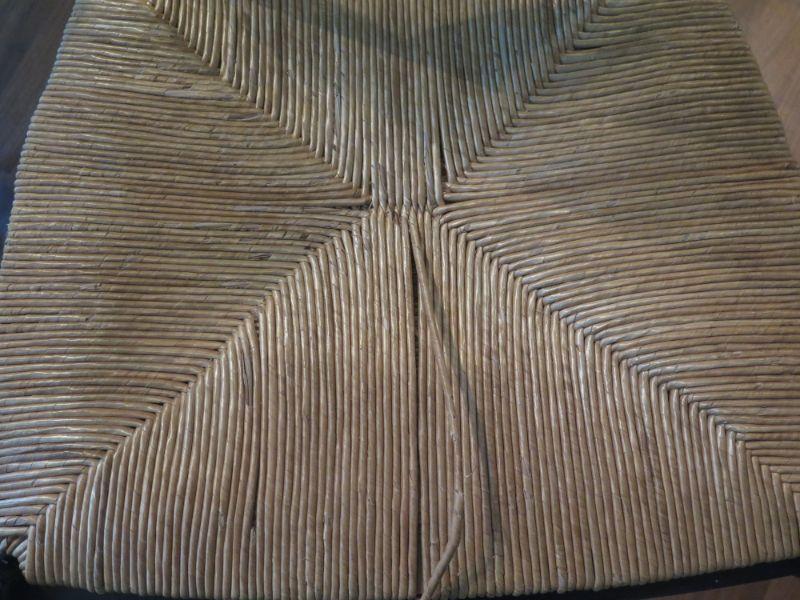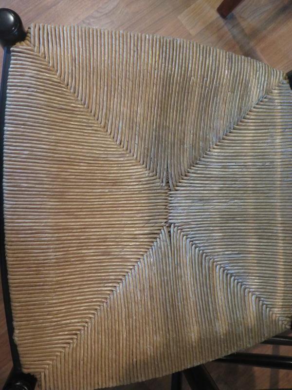 Lightly distressed black ladder-back rushed chairs (4) and farmhouse table. Made in Italy. Table is 72x40x30. **Please read Terms and Conditions before placing a bid. Pick up is Sunday, September 1, 2019 from 10am to 4pm in Williamstown. All sales are final. All sales are as is, where is. Please review all photos. Any props included in photos are not included in listing. All measurements are approximate. Comes from home with cats.