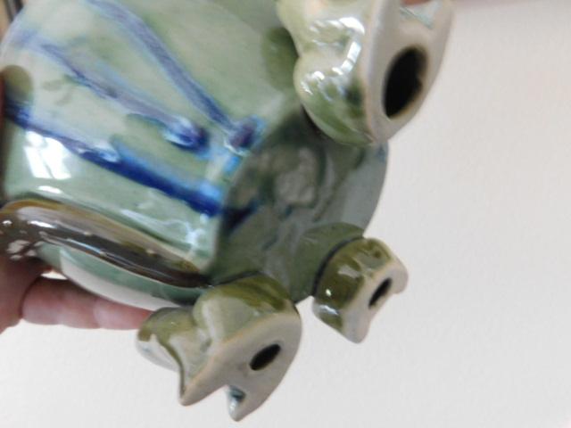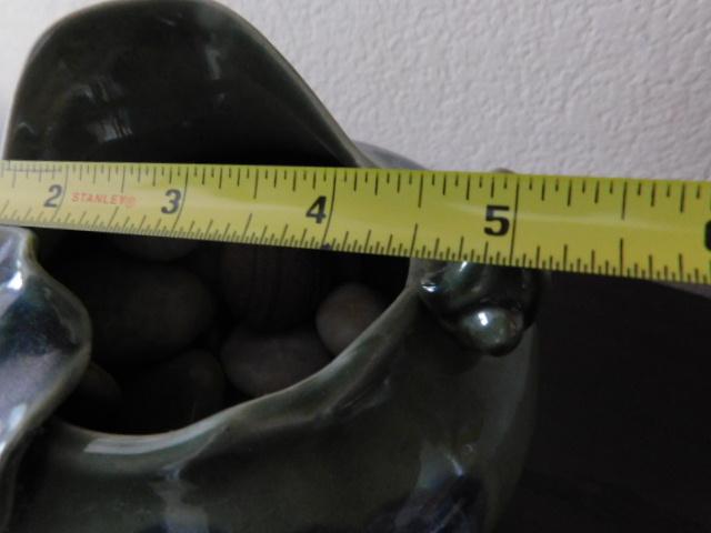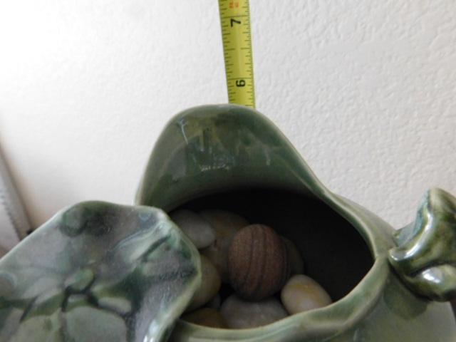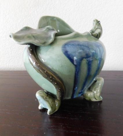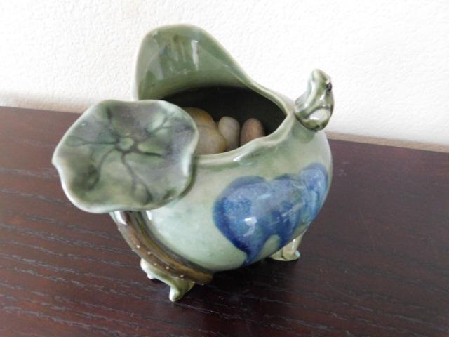 Pottery Ceramic Vase with Frog and Lilly Pads Unsigned 6"x5"