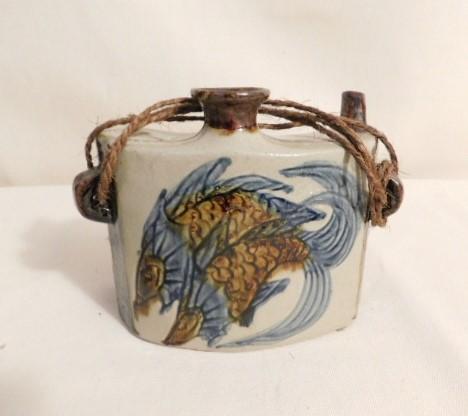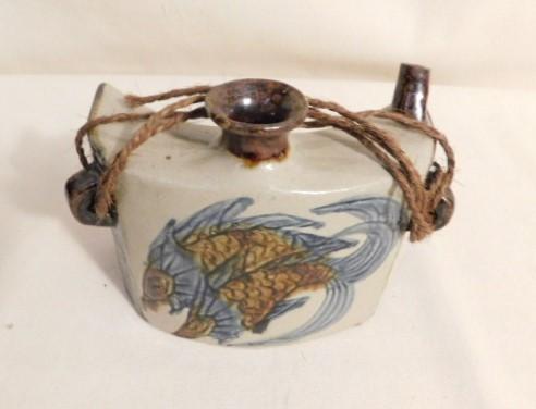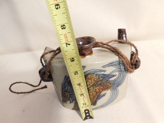 Pottery Chinoiserie Artist Signed Water Vessel 8"x6"