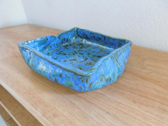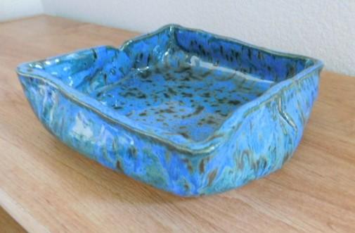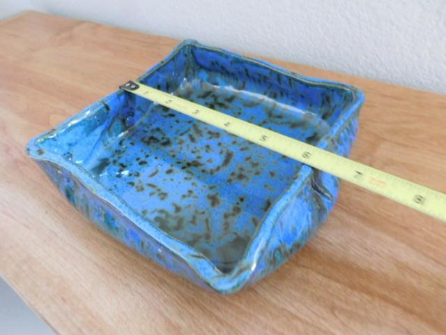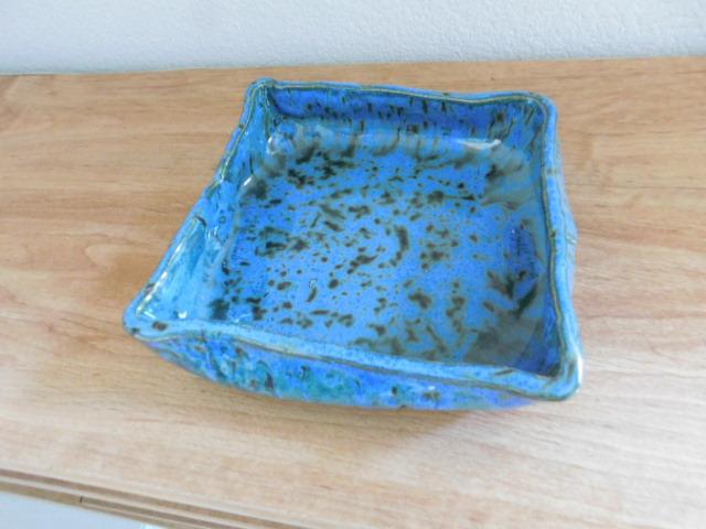Pottery Clay Freeform Blue Glaze Dish by Charyl Stone 6"x6"