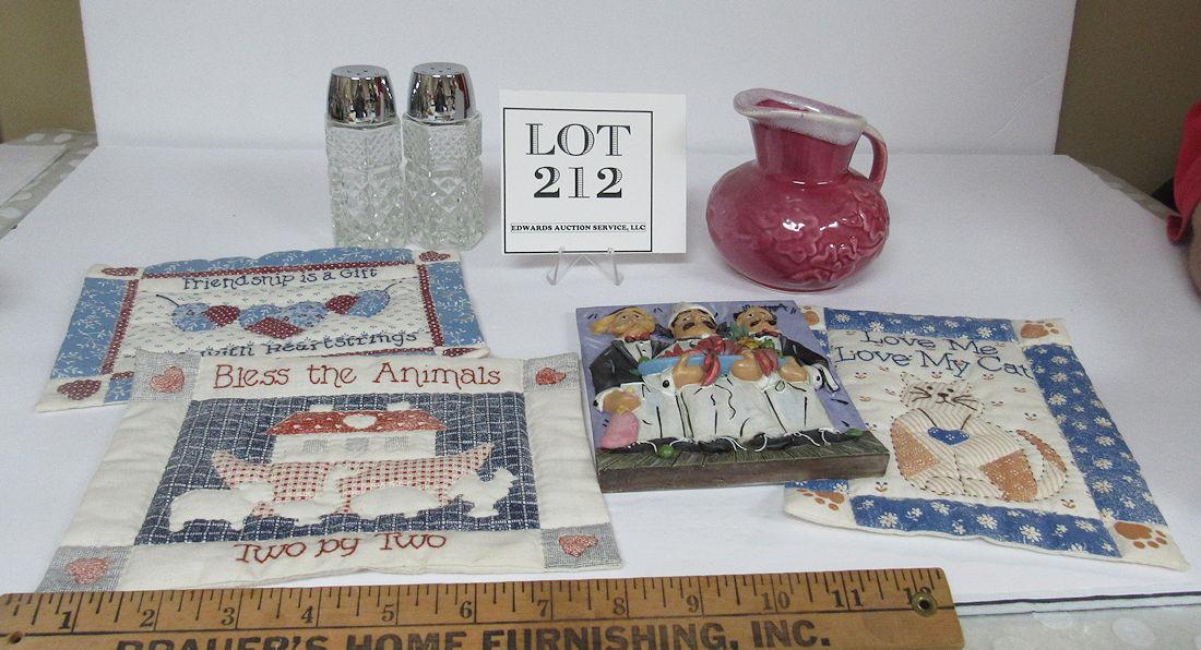 Overall good condition. The pot holders are very thin material. Shipping is available at shipping cost plus $5.00 handling fee on up to 8 lots, $10.00 handling fee on 9 or more lots or two boxes.