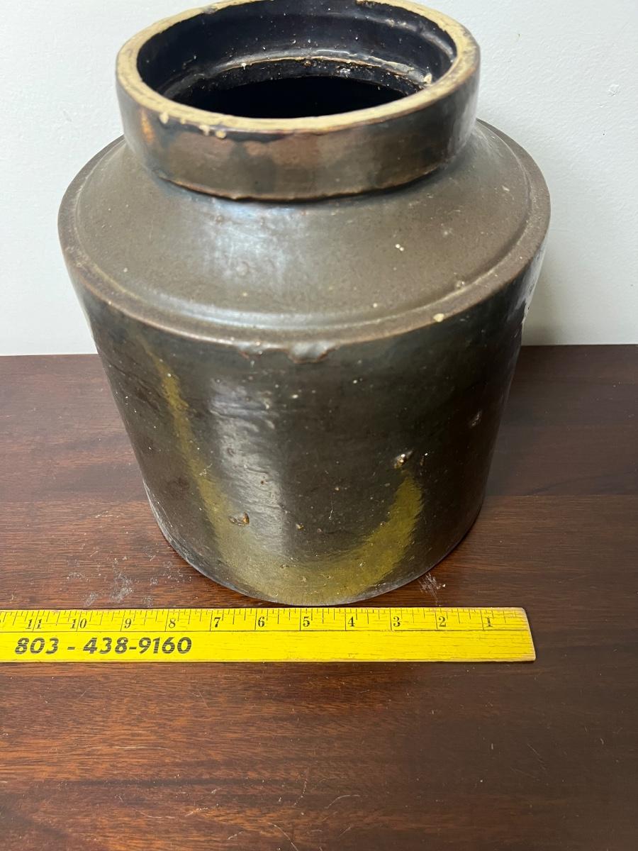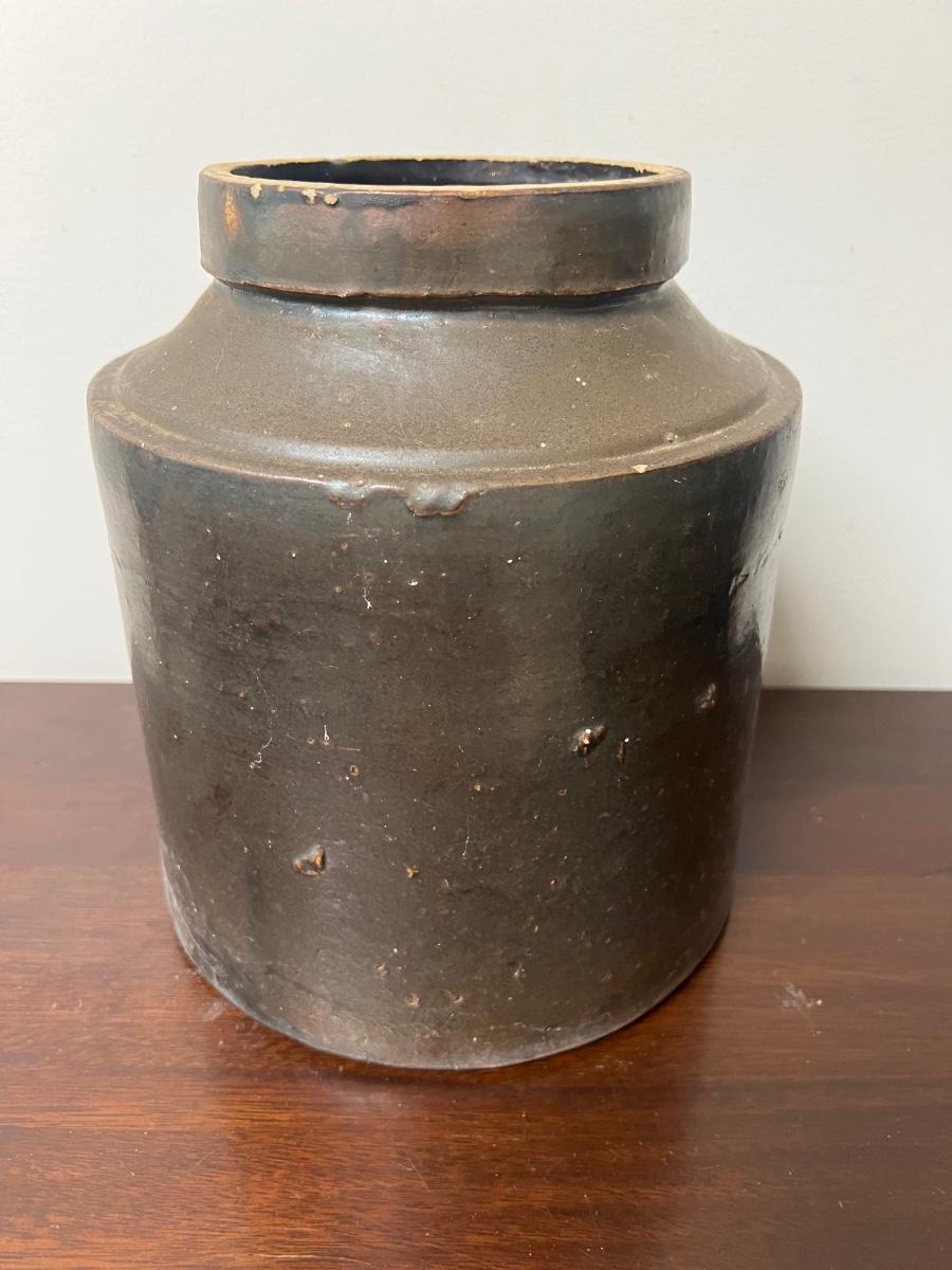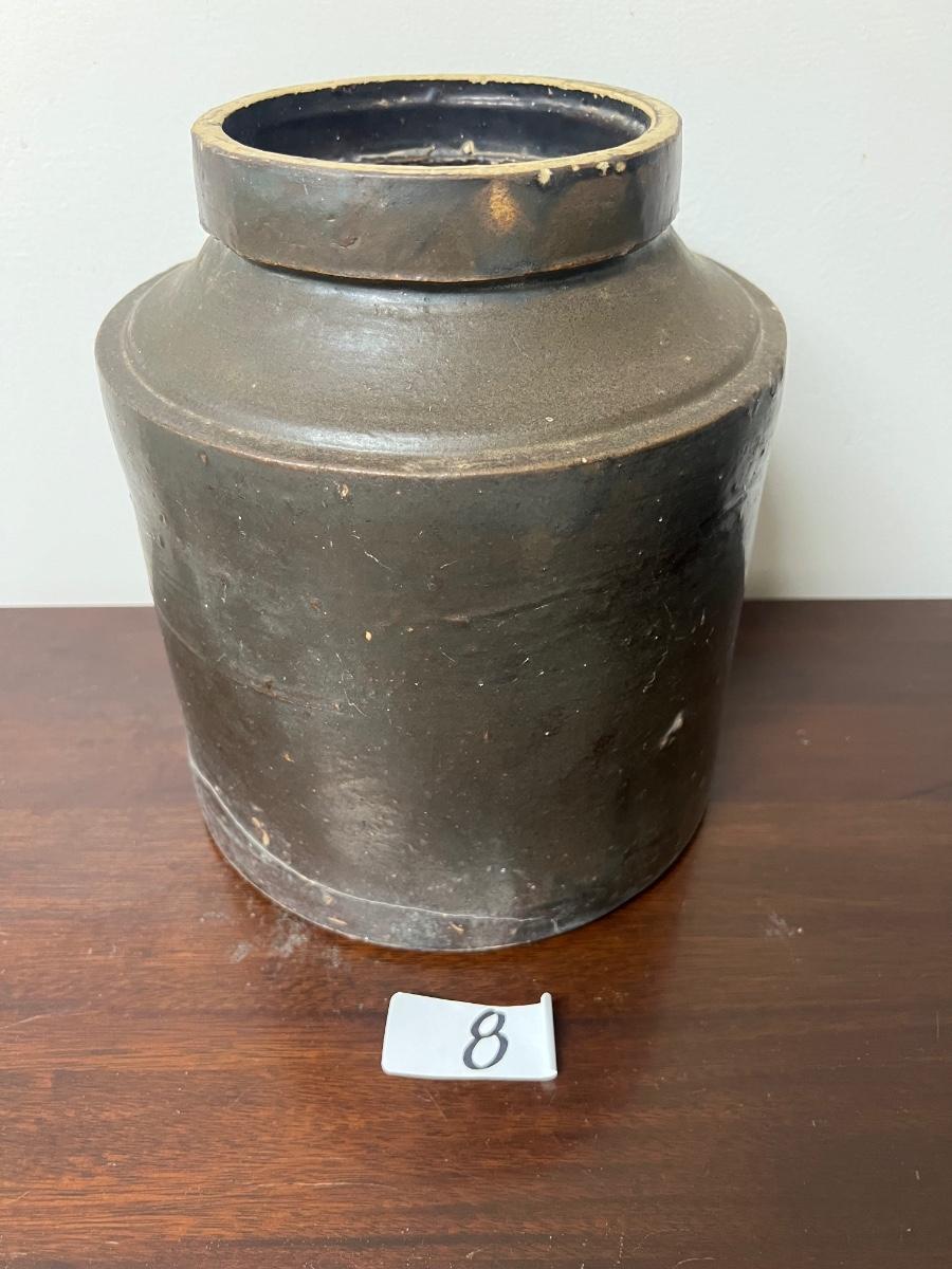 Antique pottery crock brown glazed crock as pictured 9 in wide