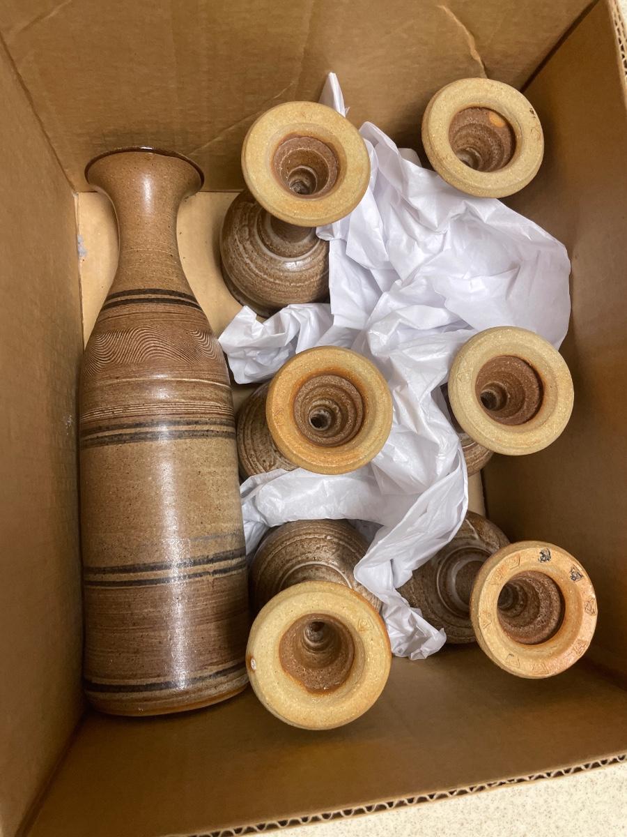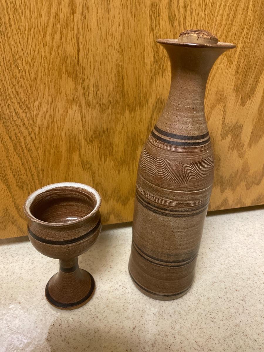 Pottery decanter with 6 glasses