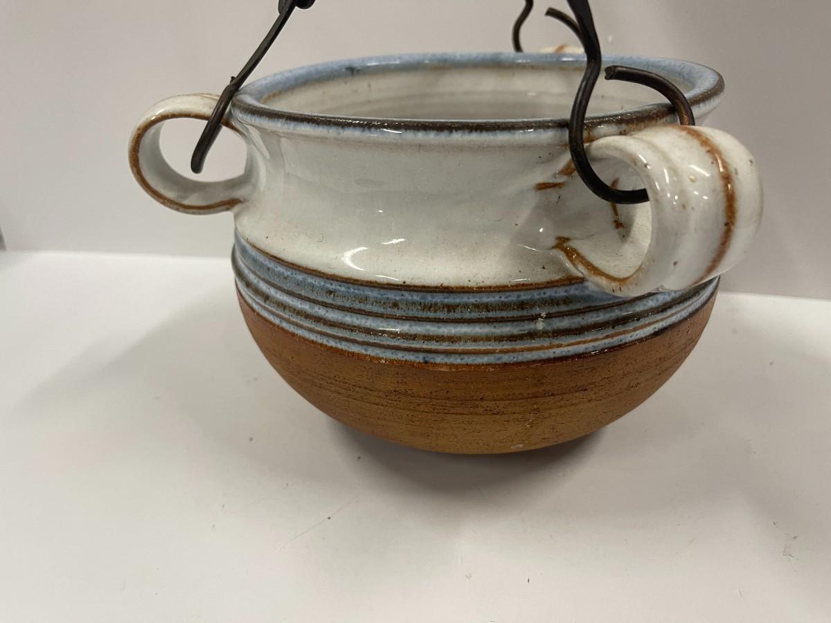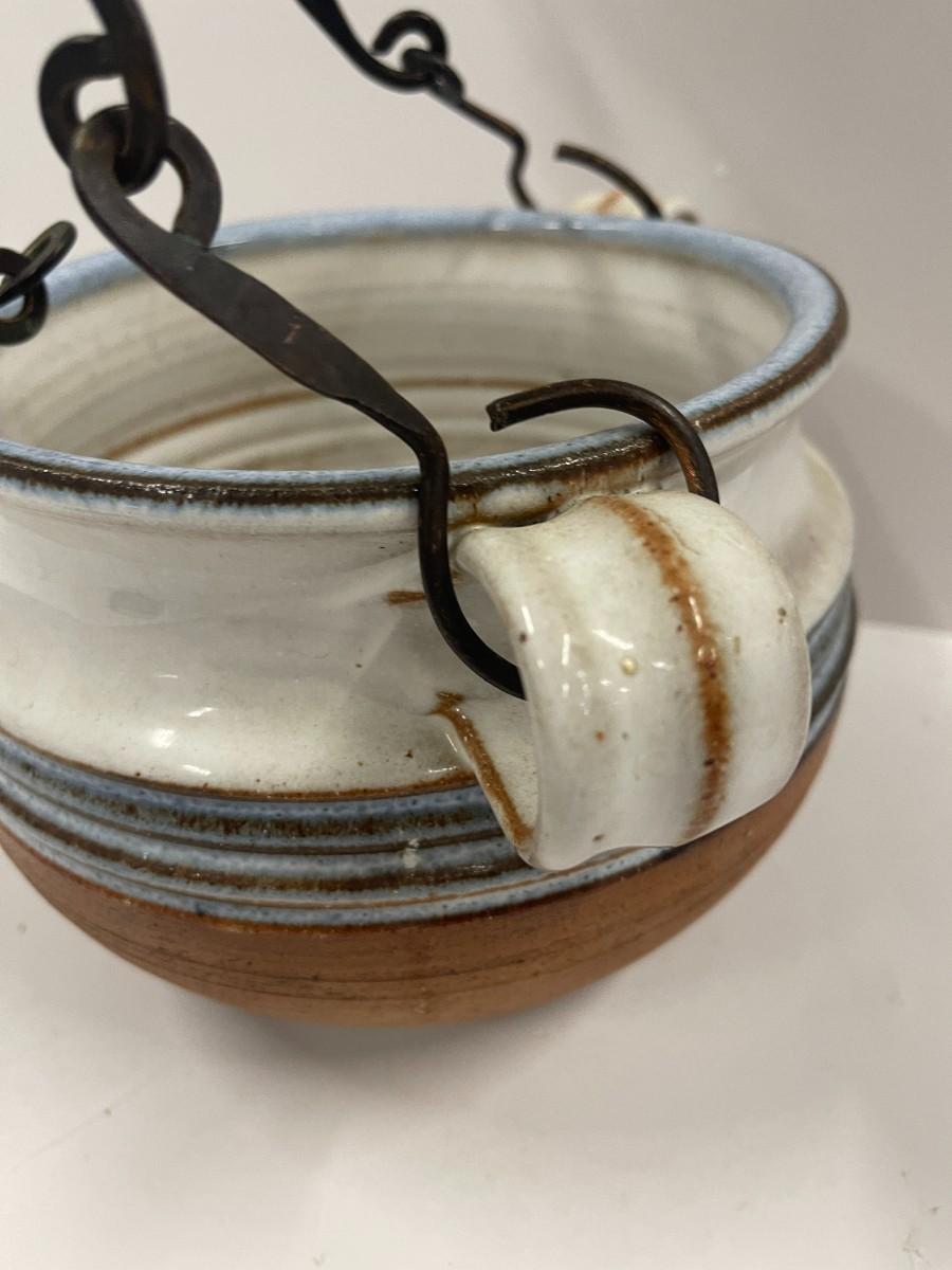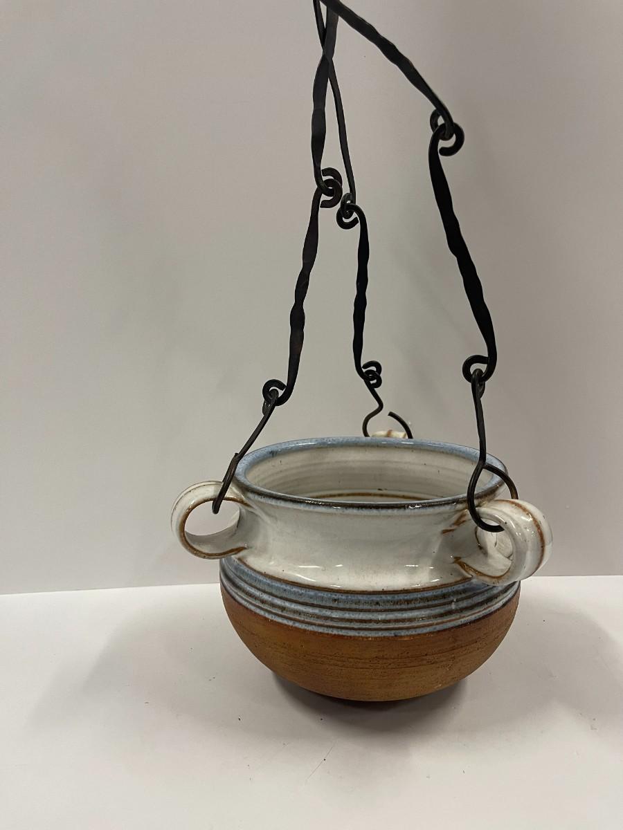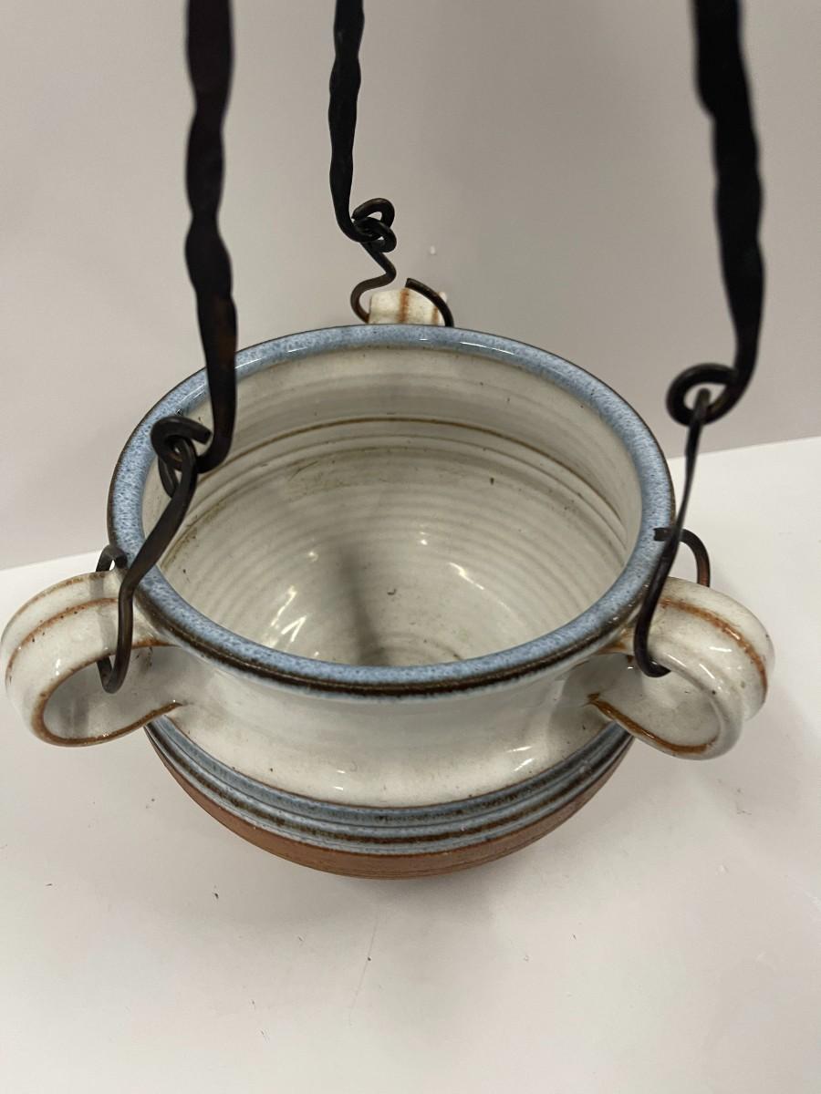 Hand made pottery hanging planter basket. Very good condition. Measures approx 5 1/2" inside diameter.